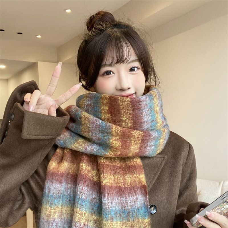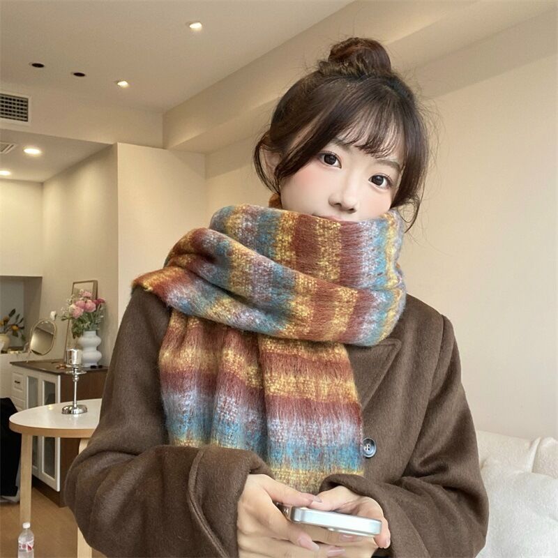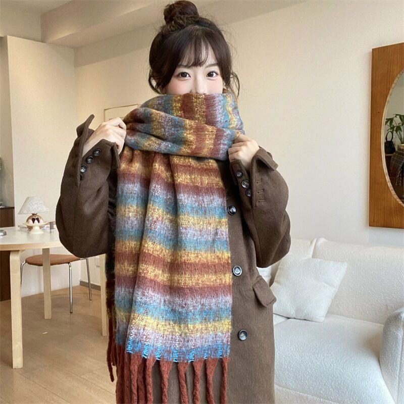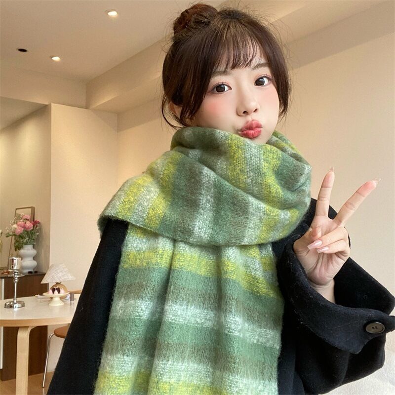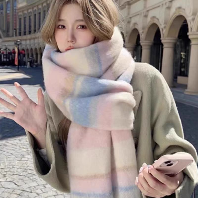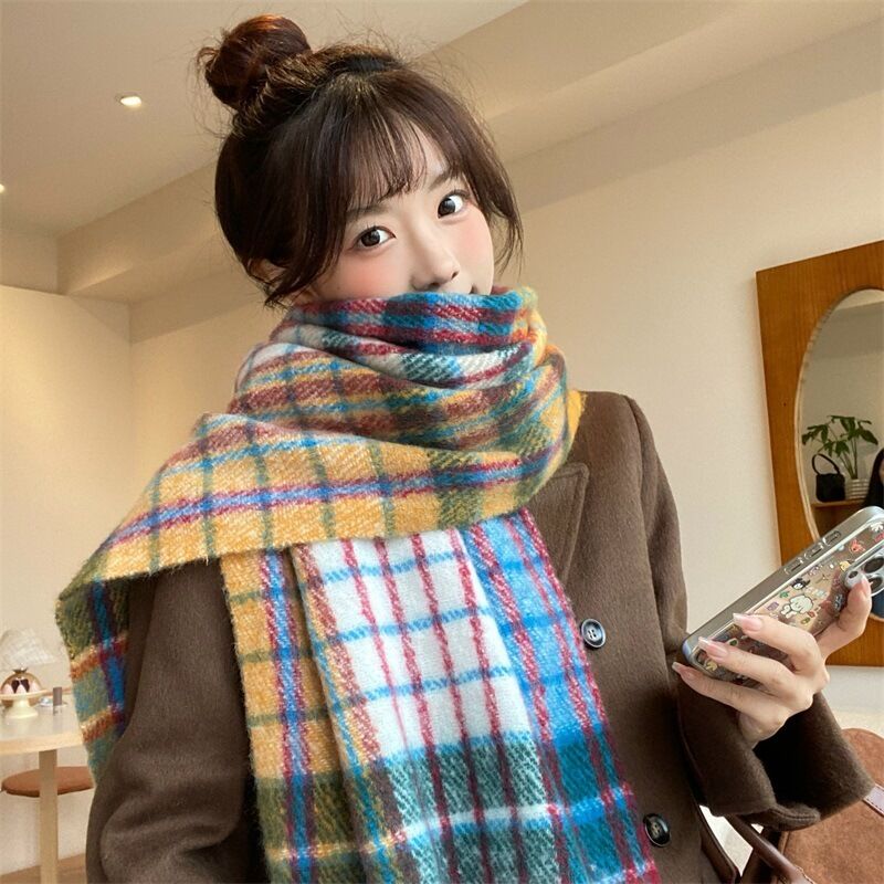 圍巾女秋冬格子圍巾高級感女士保暖新款仿羊絨流蘇女士圍脖披肩保暖披肩圍巾質感圍巾冷氣披肩空調百搭保暖圍脖防風圍脖韓版圍巾