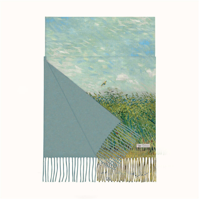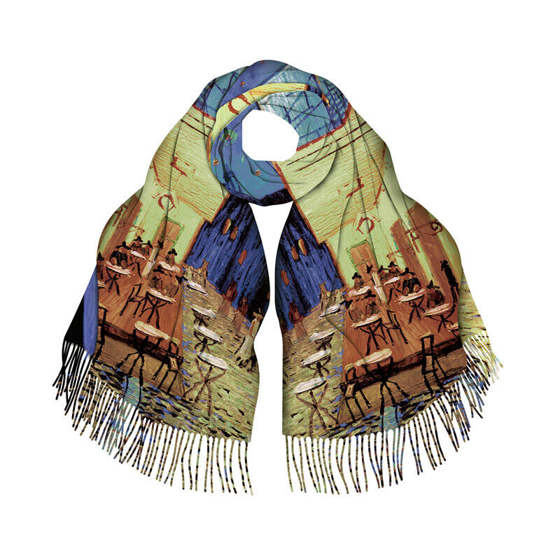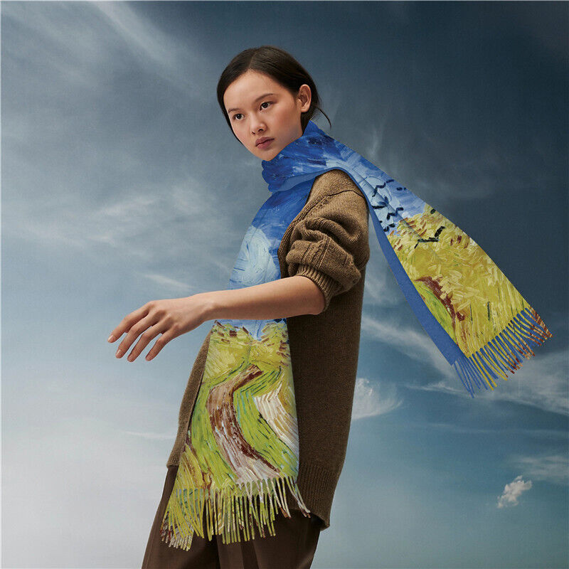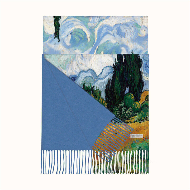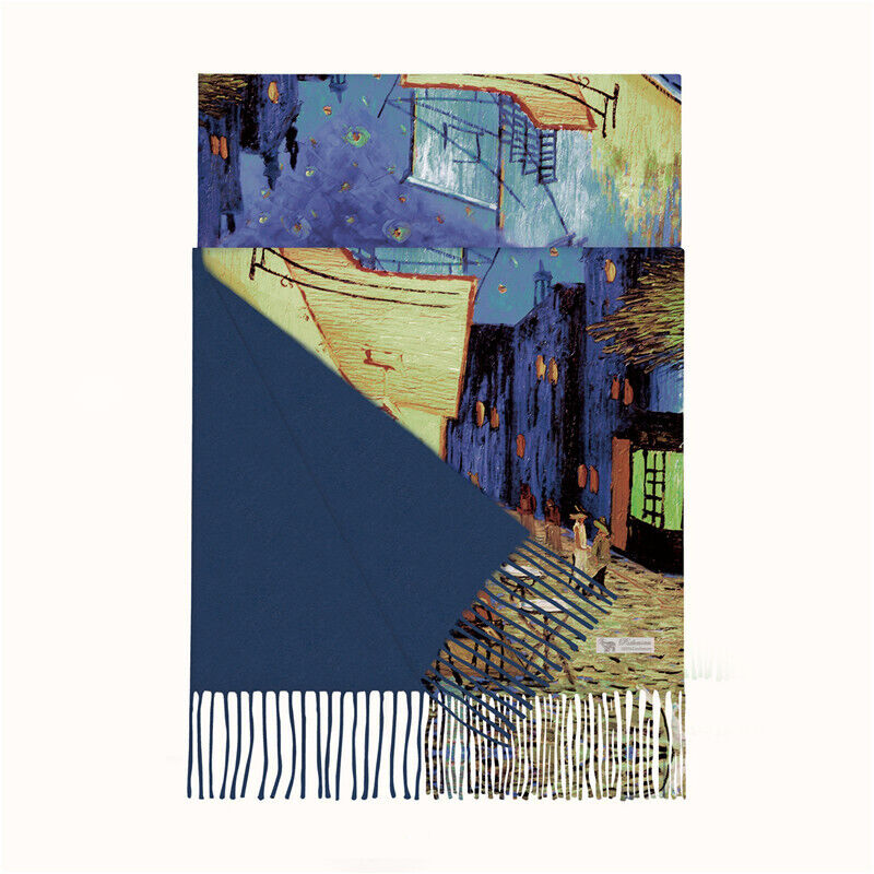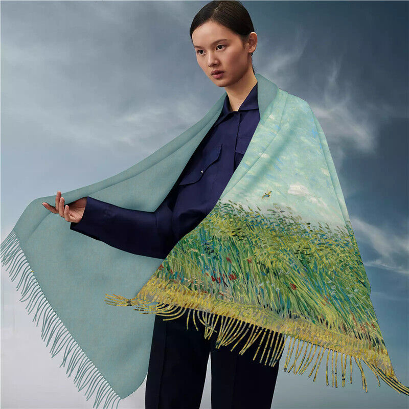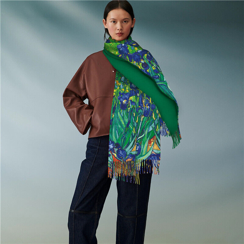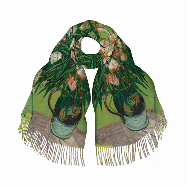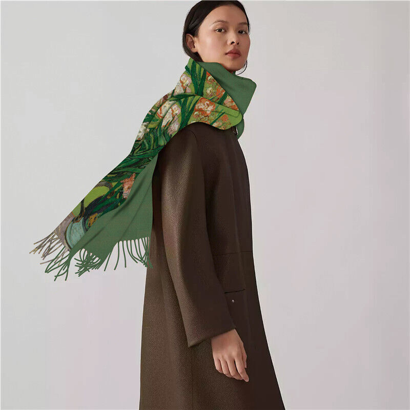 圍巾女秋冬季仿羊絨圍巾梵高油畫雙面印花圍脖冬季保暖流蘇披肩保暖披肩圍巾質感圍巾冷氣披肩空調百搭保暖圍脖防風圍脖韓版圍巾