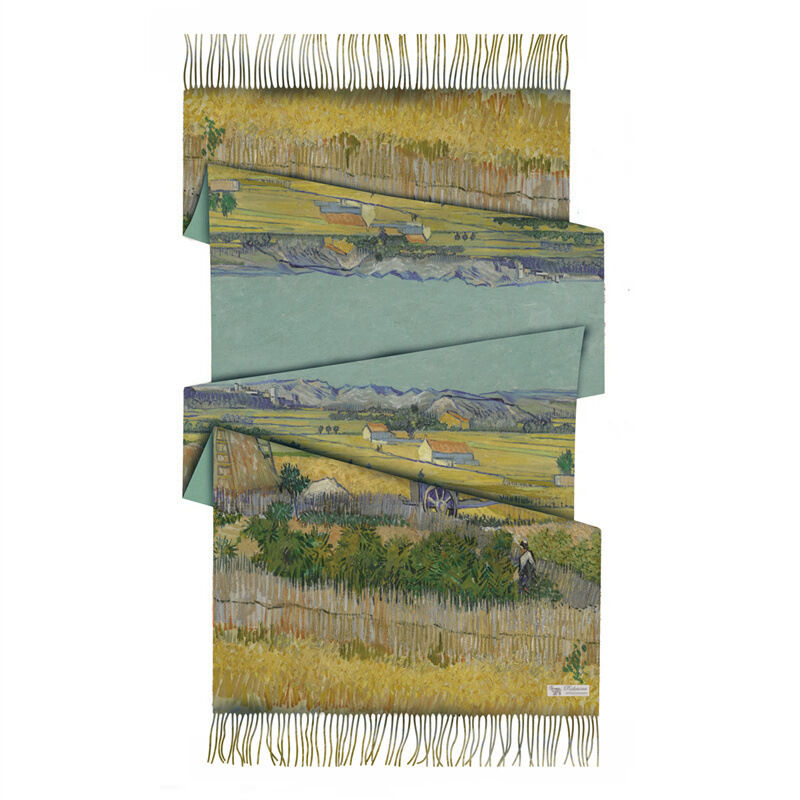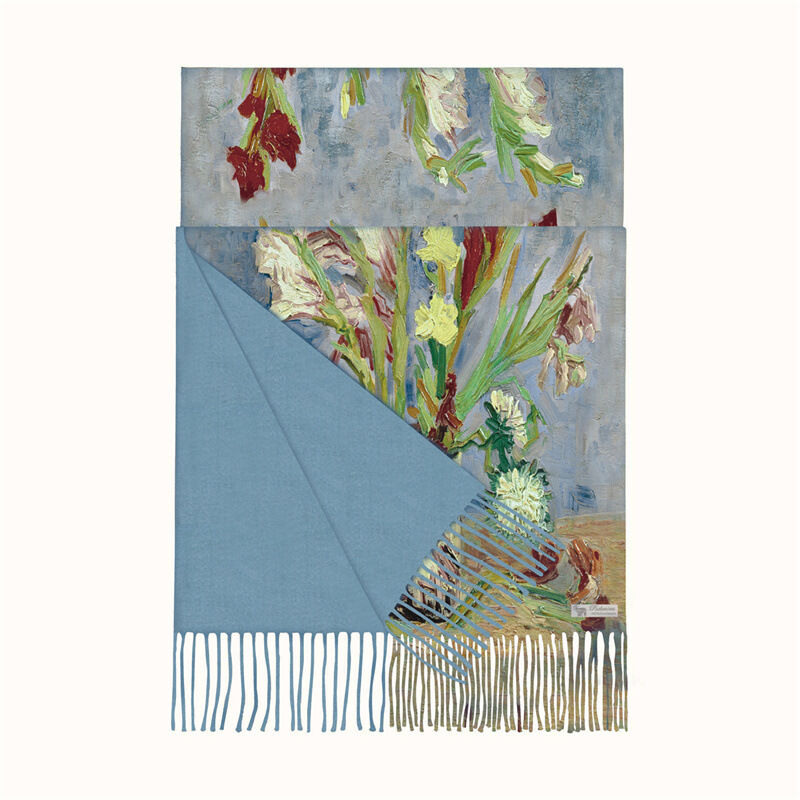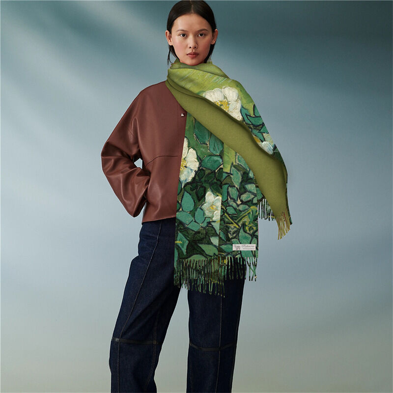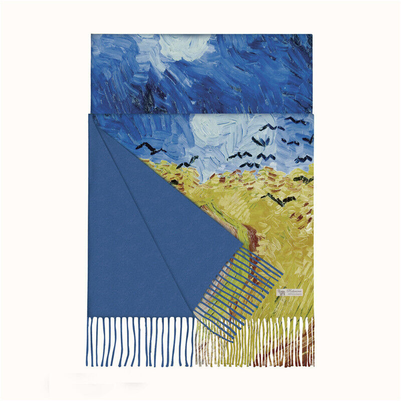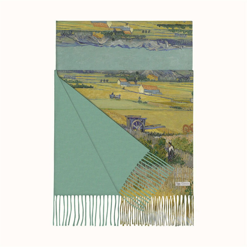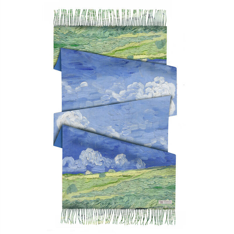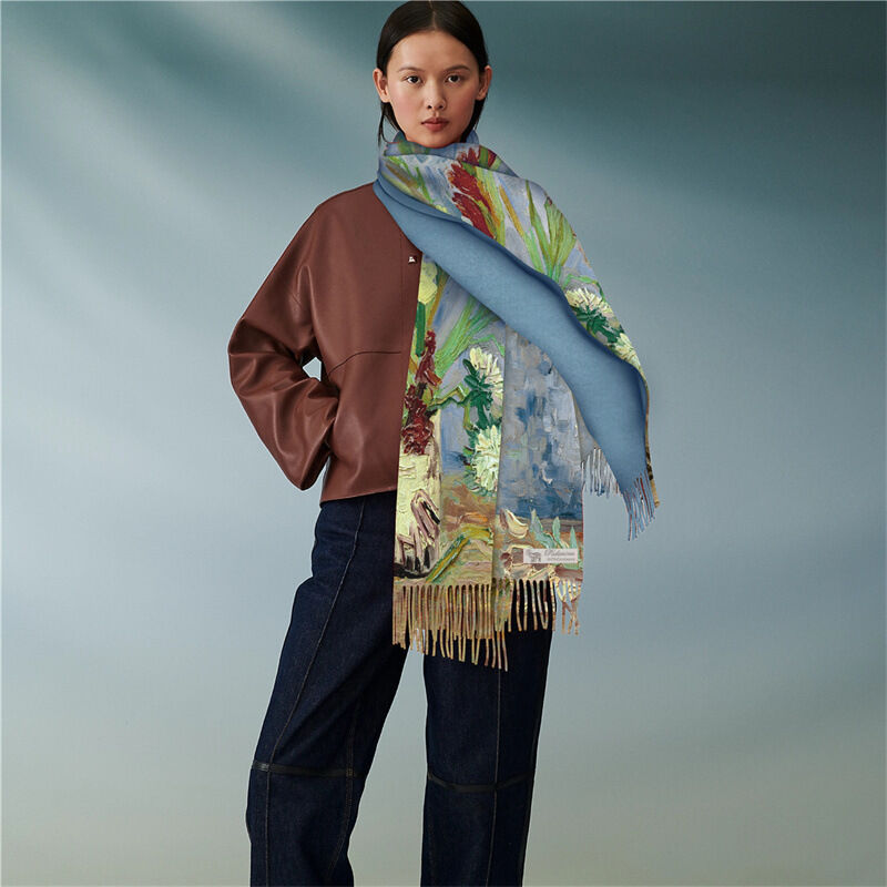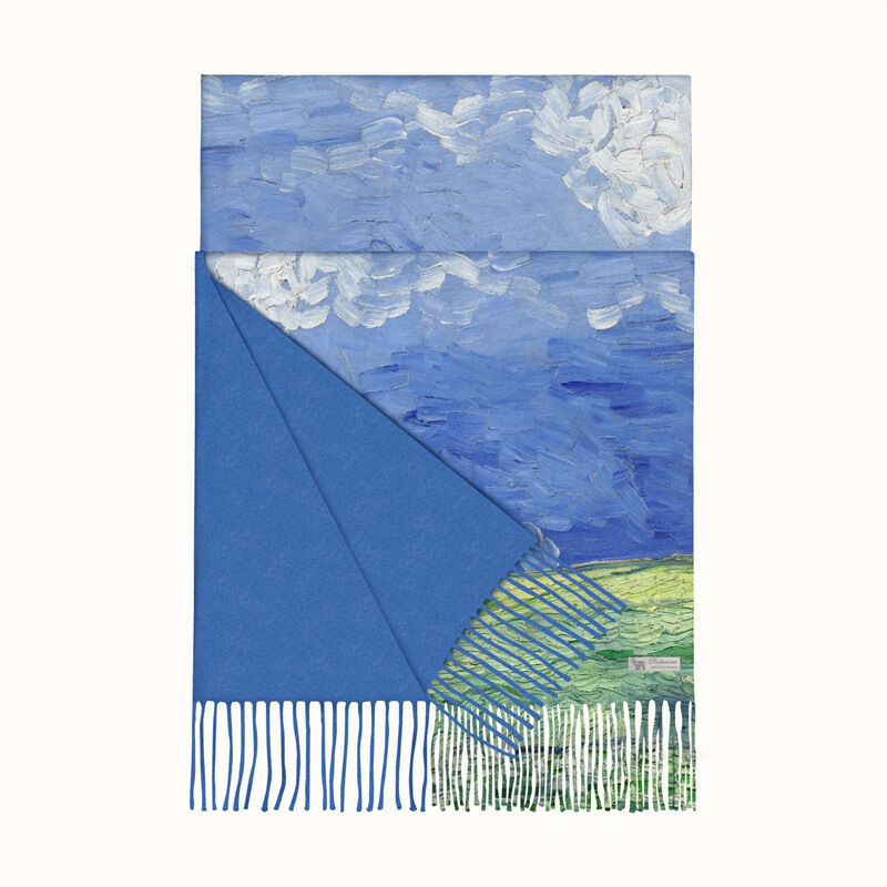 圍巾女秋冬季仿羊絨圍巾梵高油畫雙面印花圍脖冬季保暖流蘇披肩保暖披肩圍巾質感圍巾冷氣披肩空調百搭保暖圍脖防風圍脖韓版圍巾