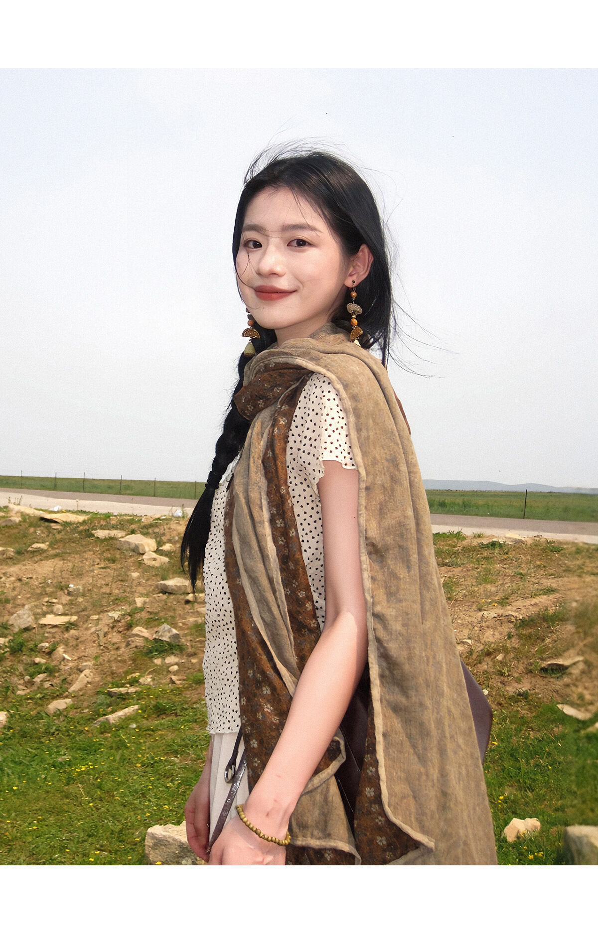 圍巾女旅遊棉麻圍巾女草原薄款文藝絲巾民族風長披肩保暖披肩圍巾質感圍巾冷氣披肩空調百搭保暖圍脖防風圍脖韓版圍巾