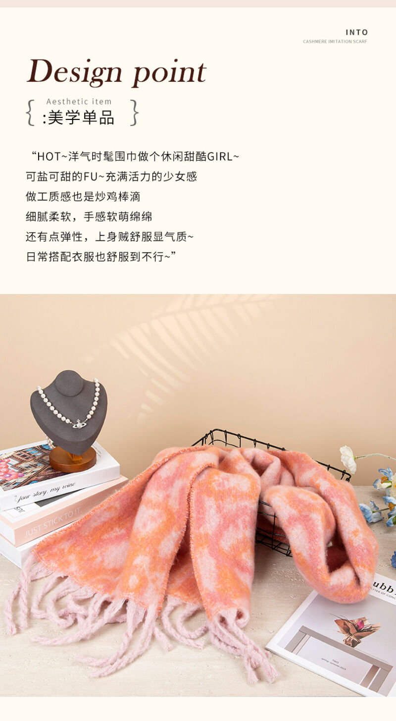 圍巾女秋冬新款韓版甜妹風印花圍巾女保暖加厚仿羊絨圍脖保暖披肩圍巾質感圍巾冷氣披肩空調百搭保暖圍脖防風圍脖韓版圍巾