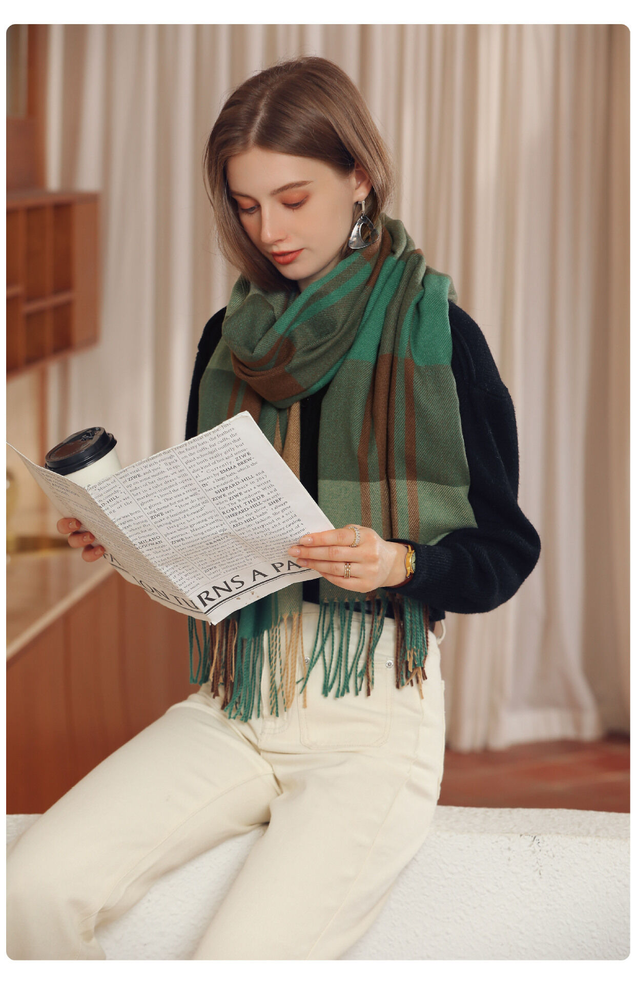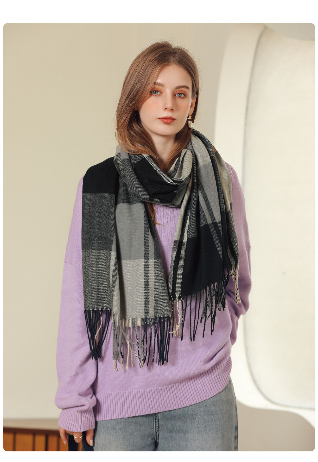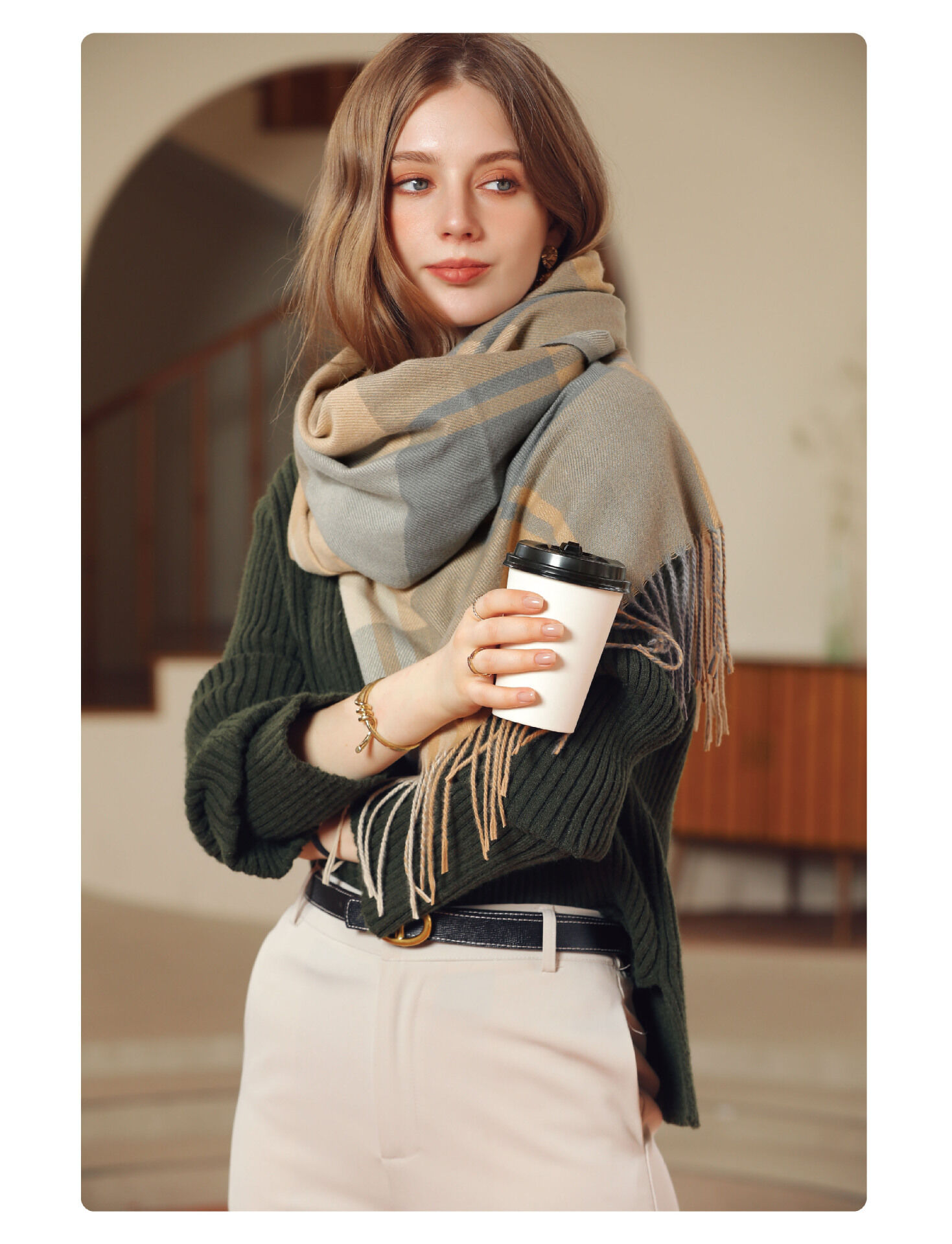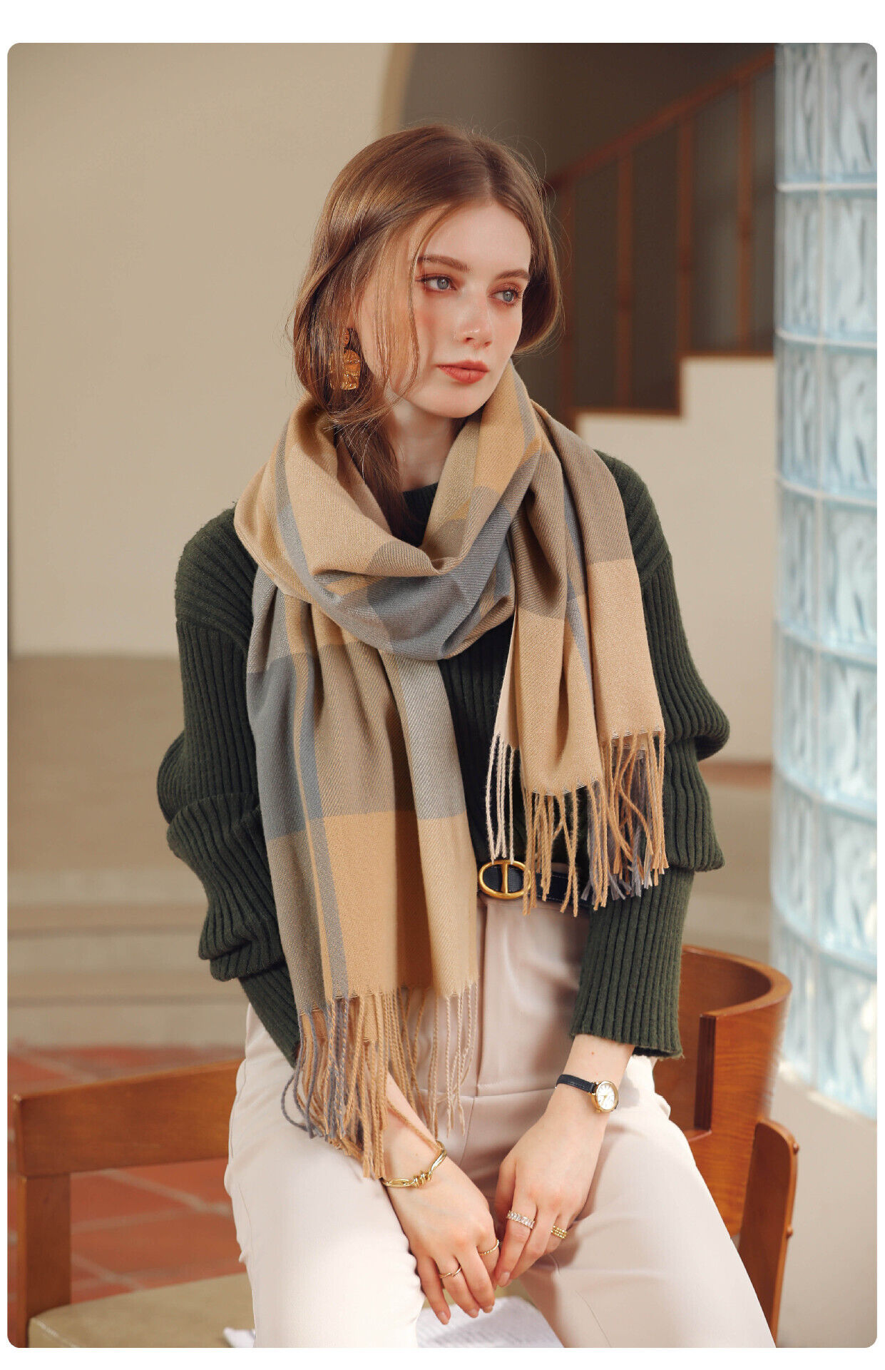 圍巾女格子仿羊絨圍巾新款冬季圍巾女披肩加厚保暖流蘇圍脖保暖披肩圍巾質感圍巾冷氣披肩空調百搭保暖圍脖防風圍脖韓版圍巾