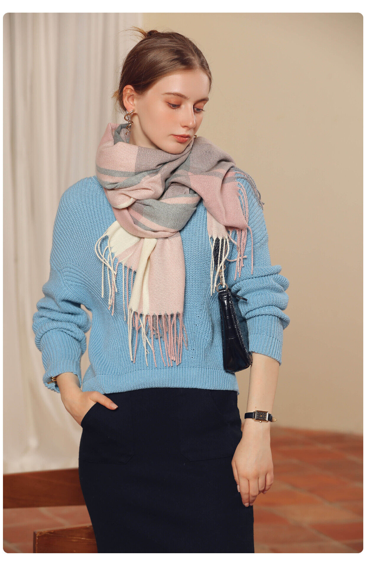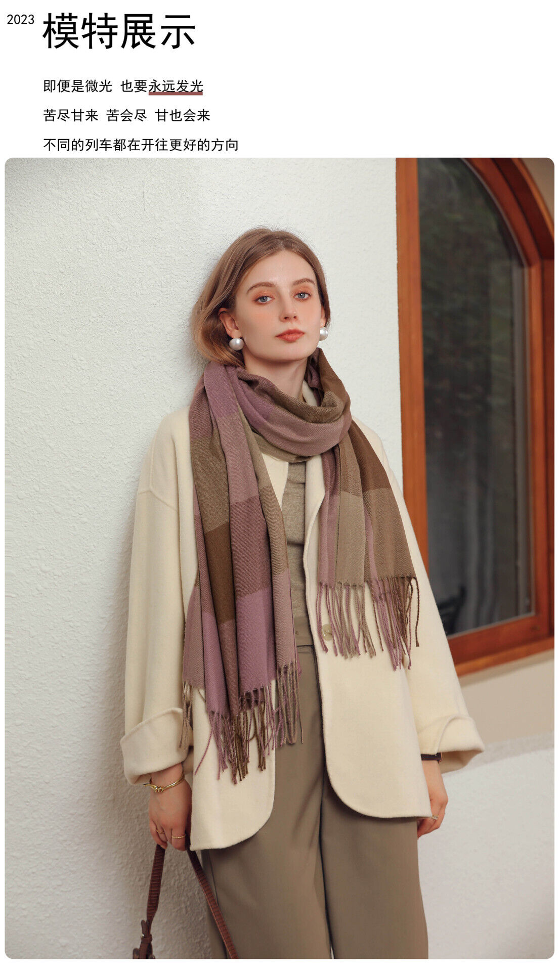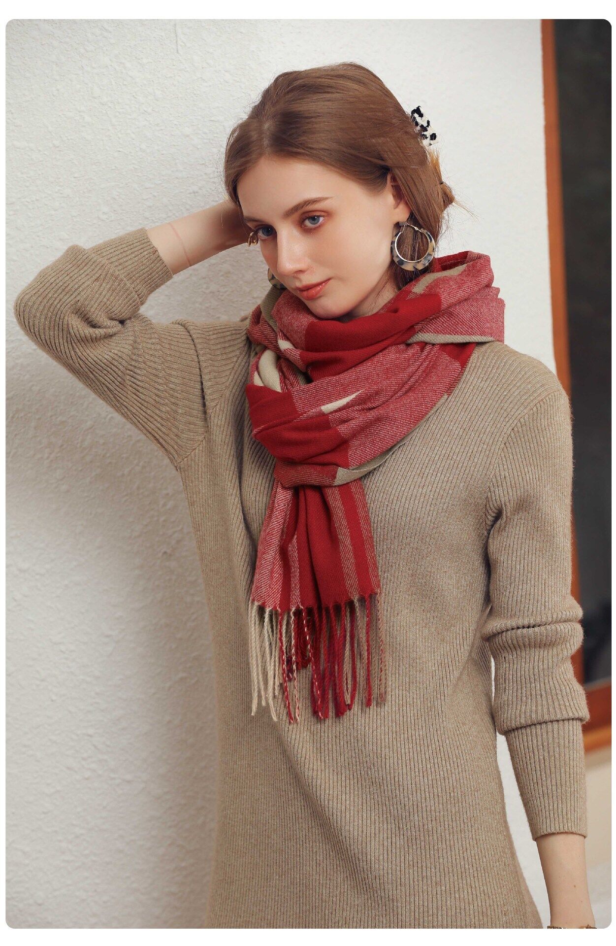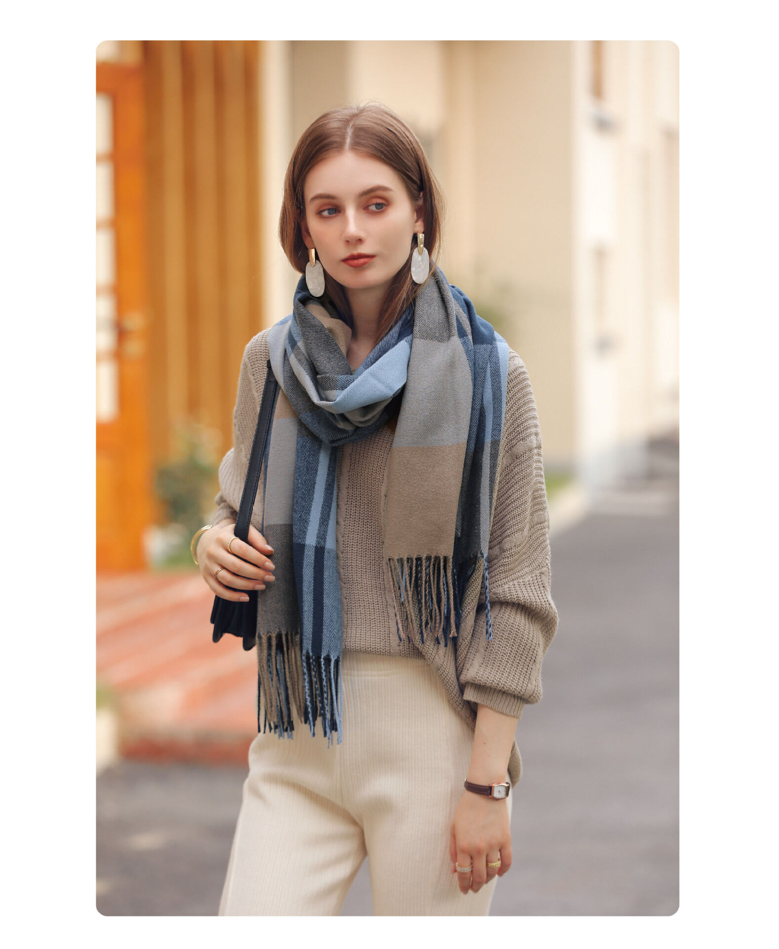 圍巾女格子仿羊絨圍巾新款冬季圍巾女披肩加厚保暖流蘇圍脖保暖披肩圍巾質感圍巾冷氣披肩空調百搭保暖圍脖防風圍脖韓版圍巾