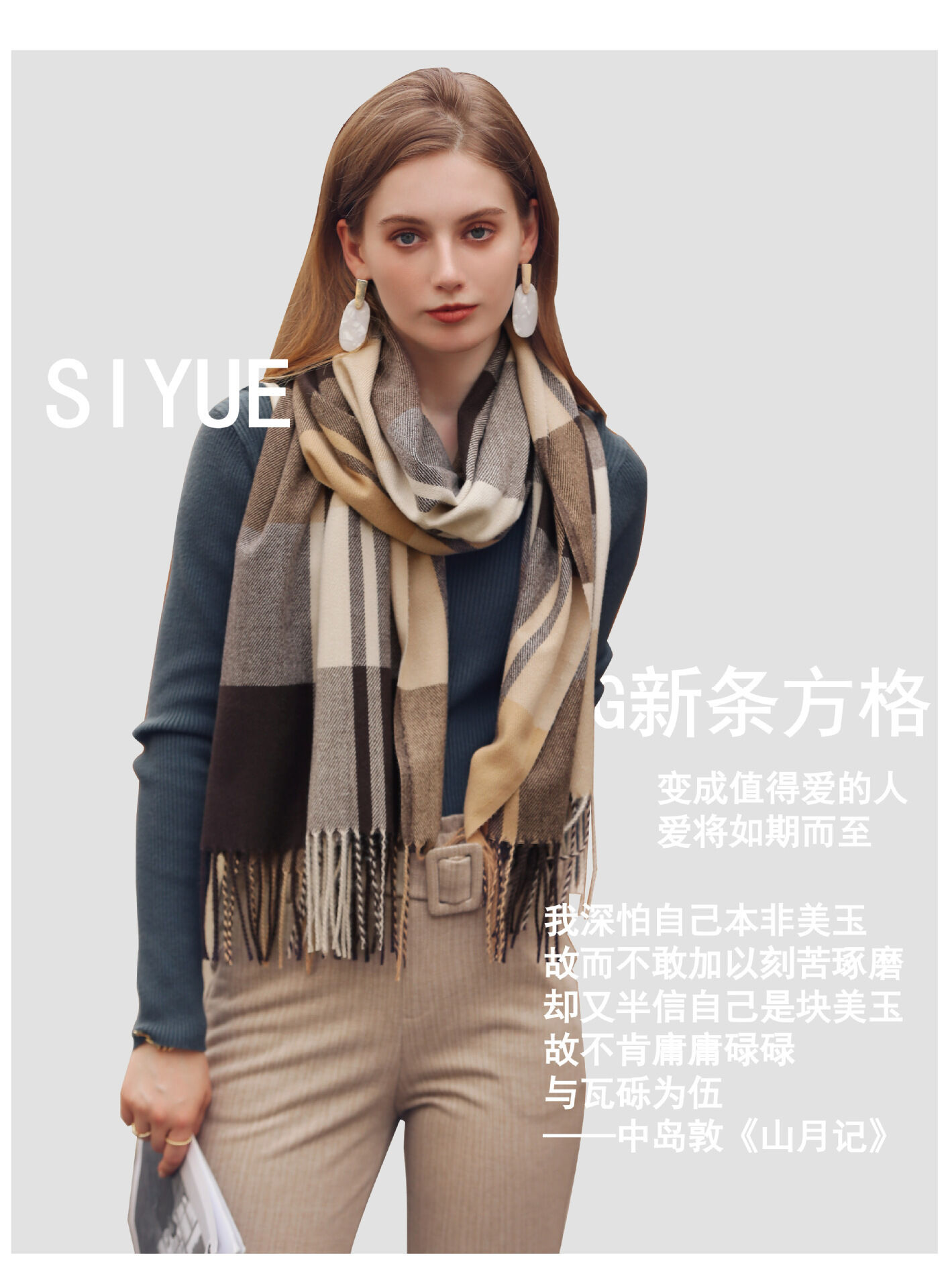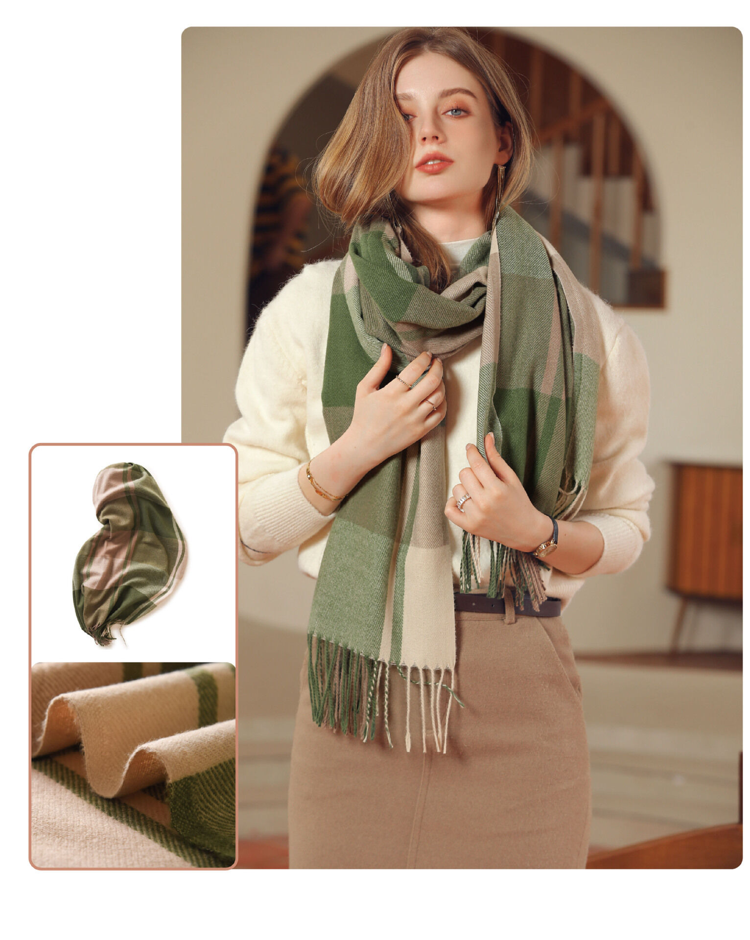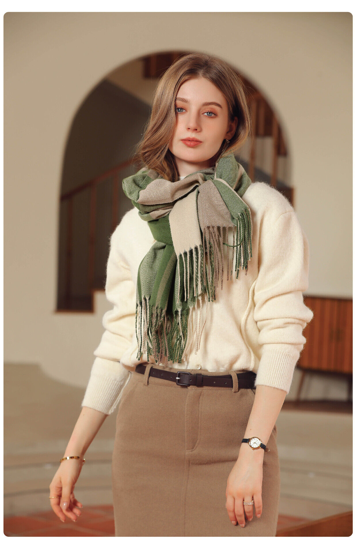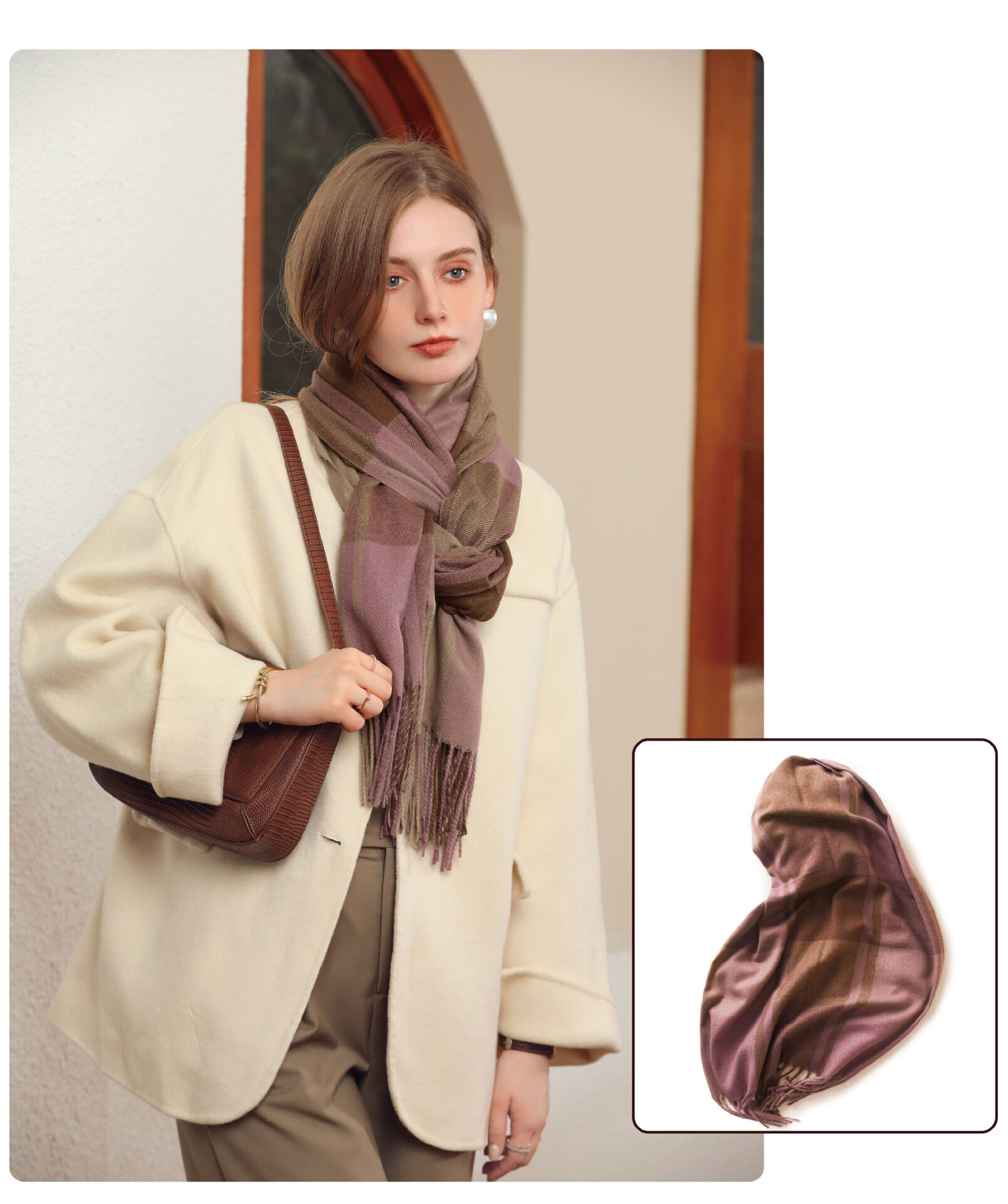 圍巾女格子仿羊絨圍巾新款冬季圍巾女披肩加厚保暖流蘇圍脖保暖披肩圍巾質感圍巾冷氣披肩空調百搭保暖圍脖防風圍脖韓版圍巾