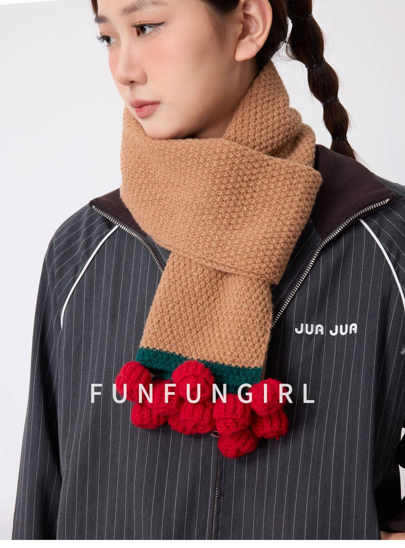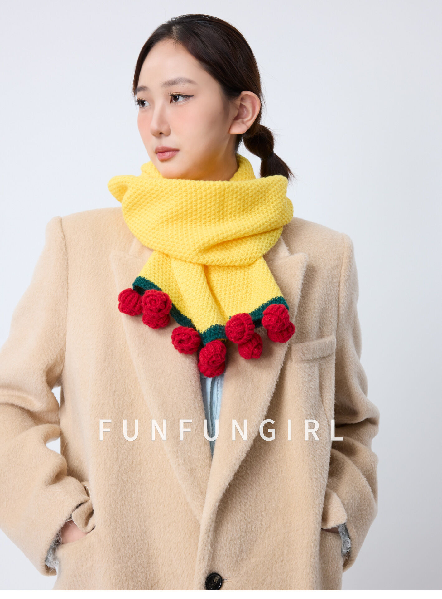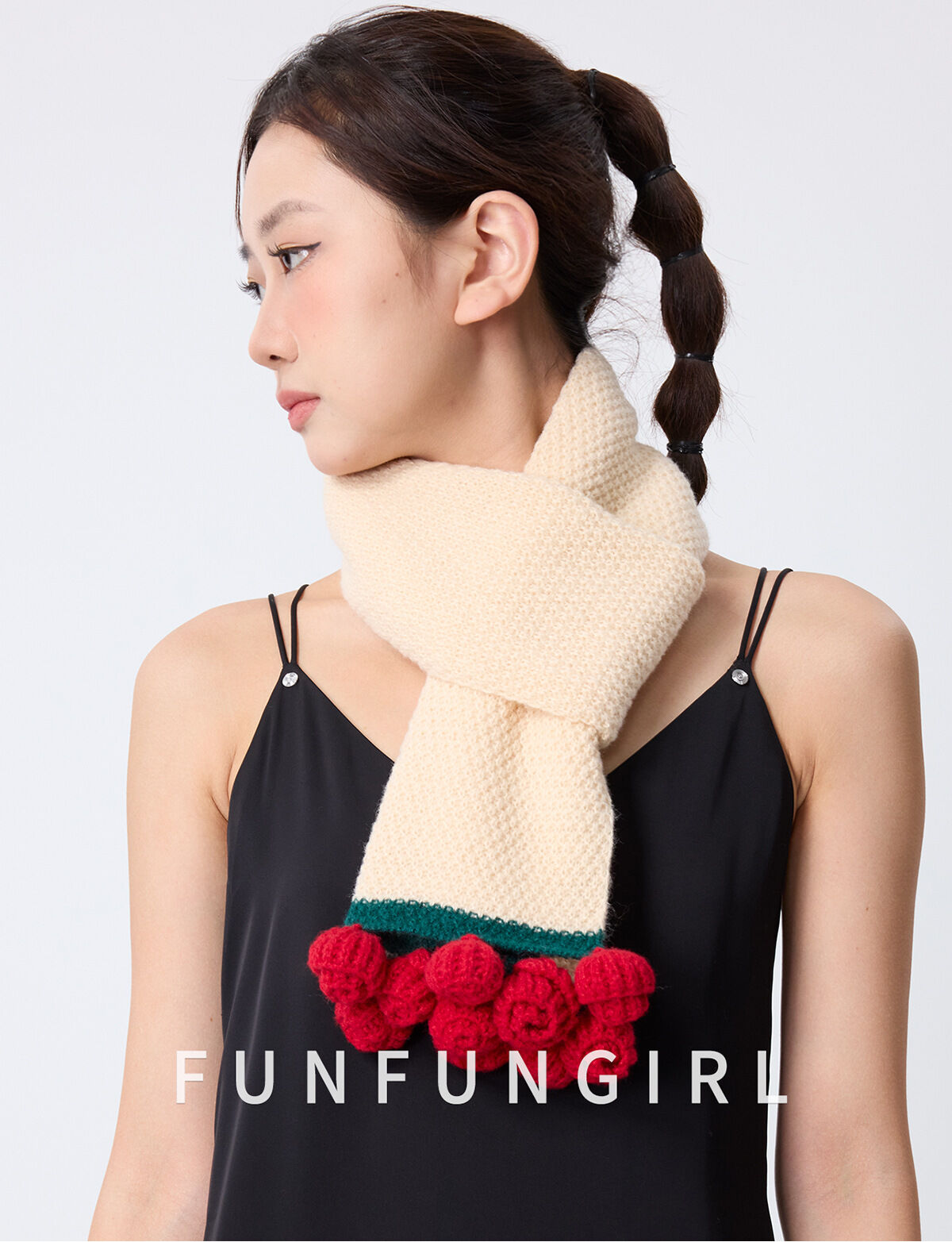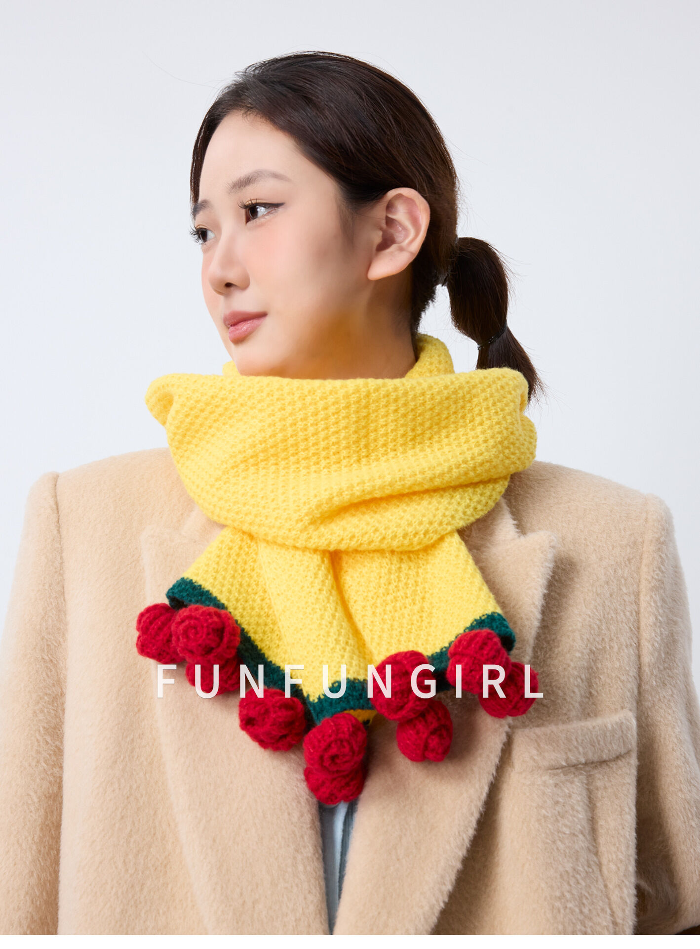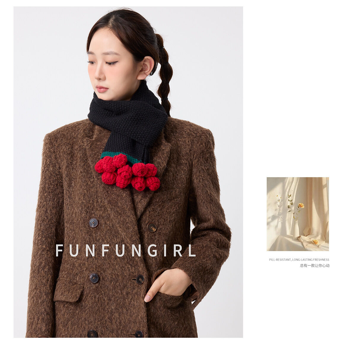 圍巾女秋冬手工玫瑰花編織保暖圍巾女韓版可愛裝飾加厚圍脖時尚針織保暖披肩圍巾質感圍巾冷氣披肩百搭保暖圍脖防風圍脖韓版圍巾
