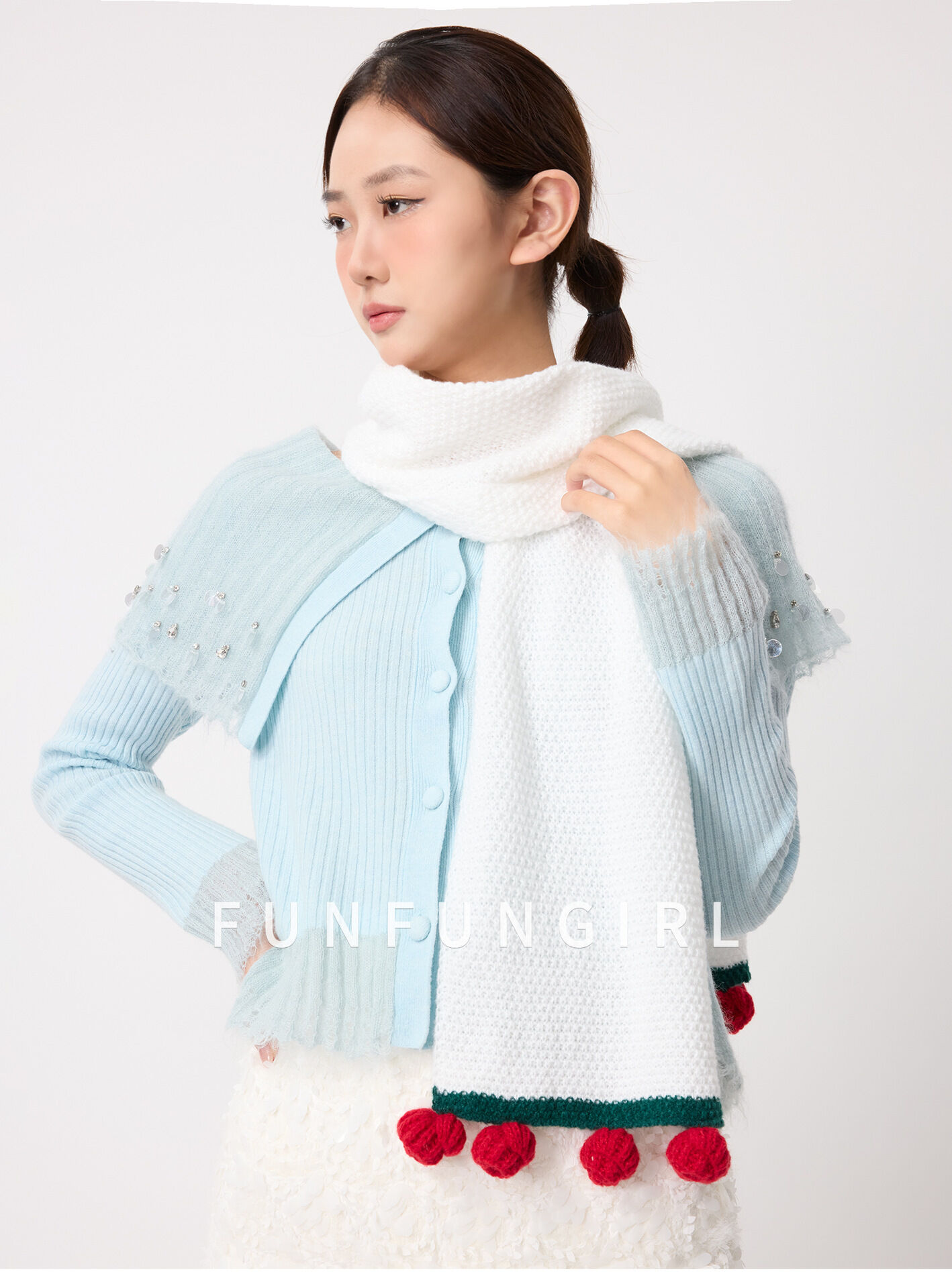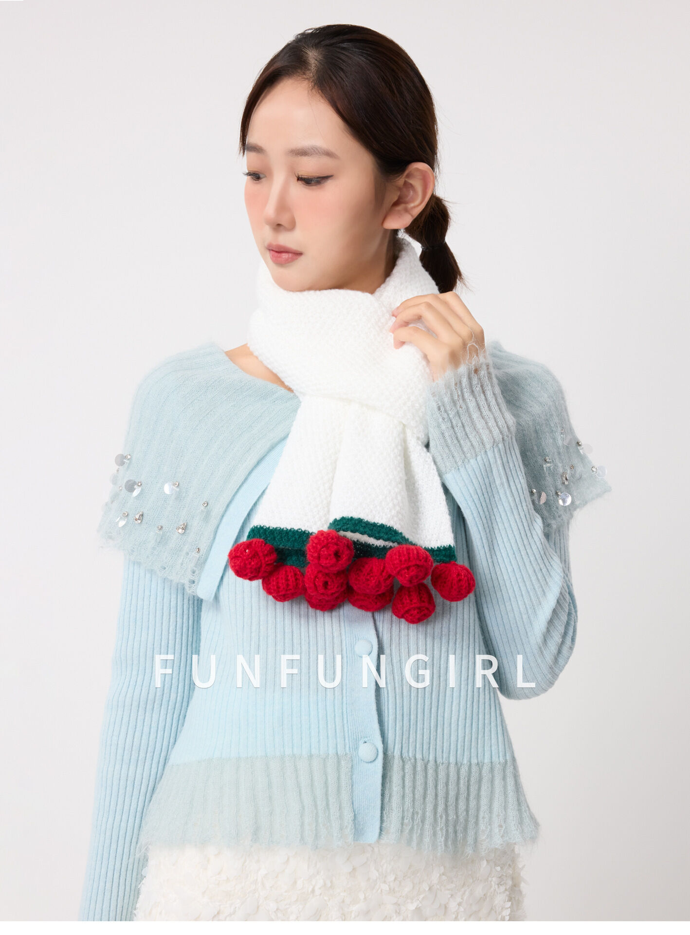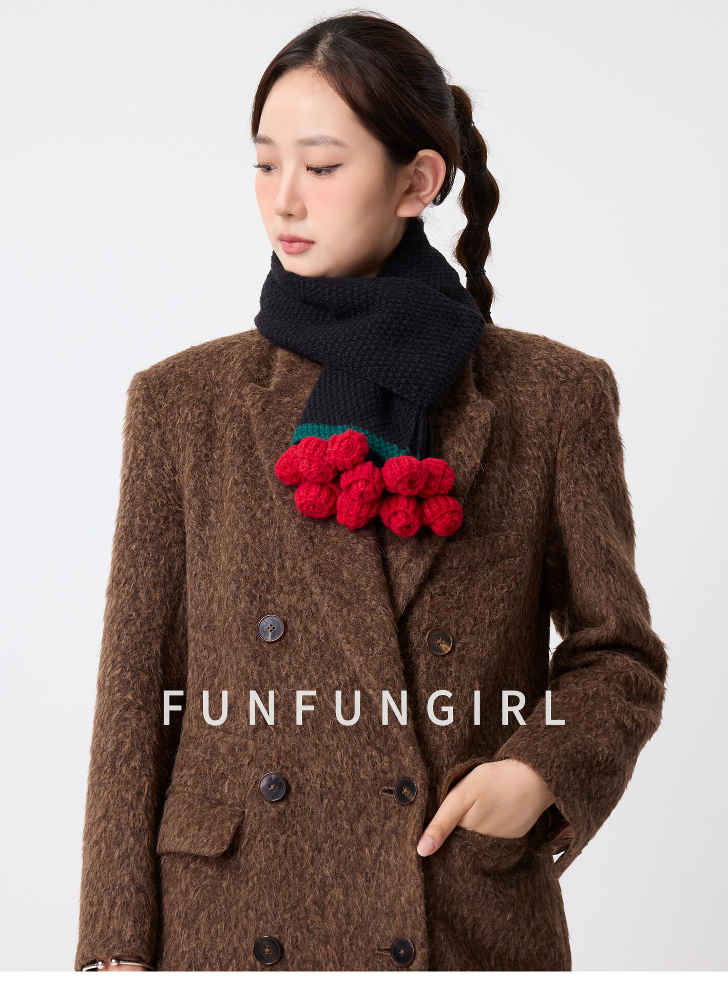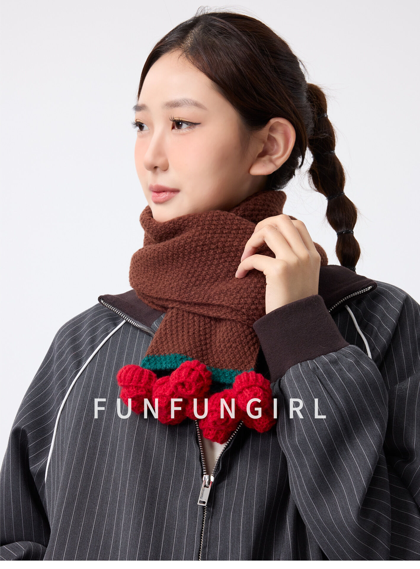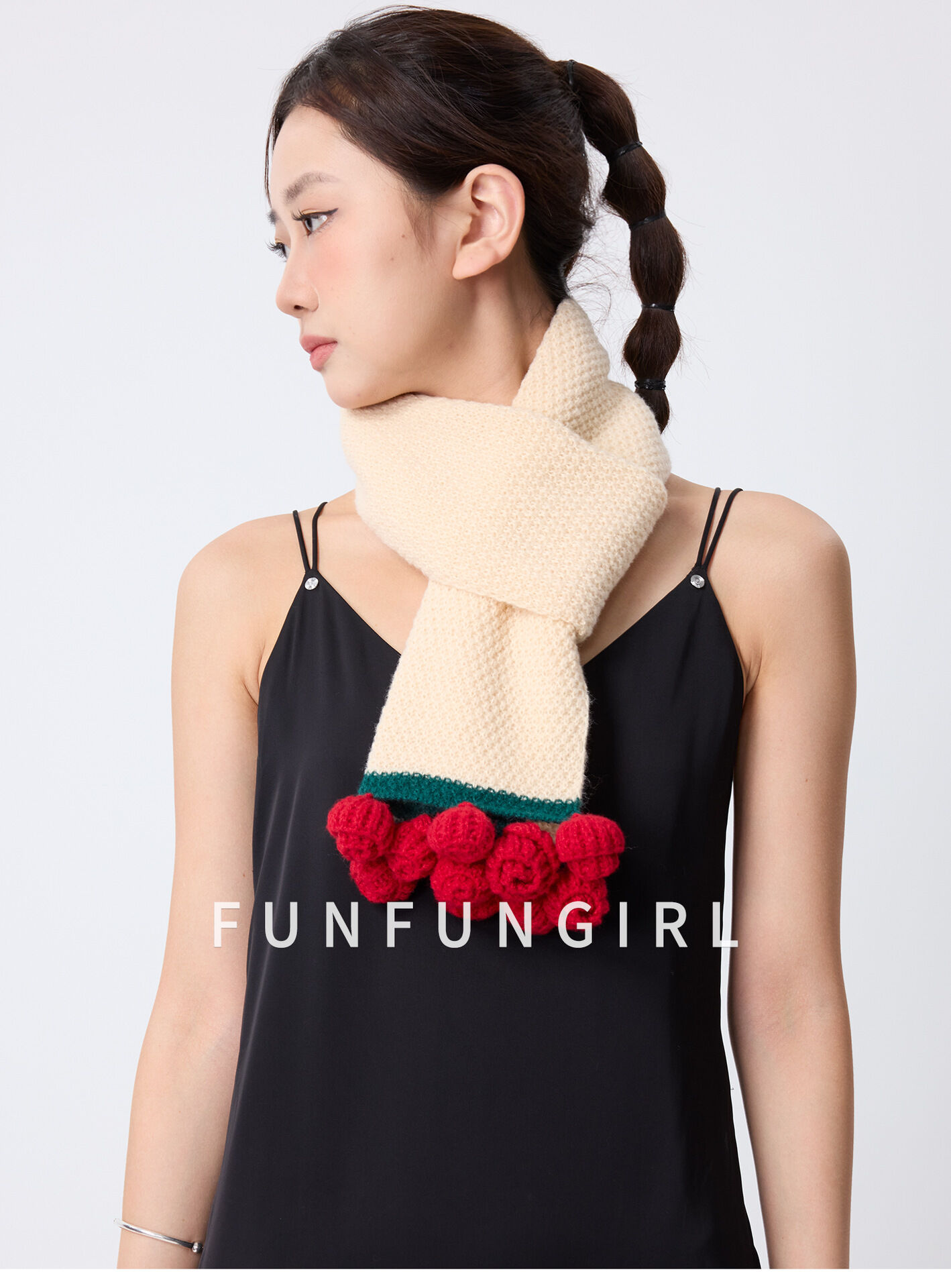 圍巾女秋冬手工玫瑰花編織保暖圍巾女韓版可愛裝飾加厚圍脖時尚針織保暖披肩圍巾質感圍巾冷氣披肩百搭保暖圍脖防風圍脖韓版圍巾