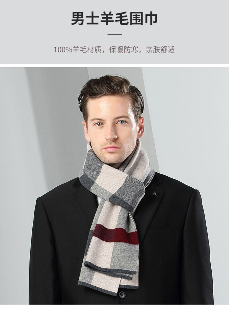 圍巾男秋冬新款純羊毛男士圍巾時尚穿搭格子圍巾男羊毛圍巾戶外防寒圍脖男士時尚保暖質感親膚圍巾圍脖防風圍脖披肩男士針織圍巾