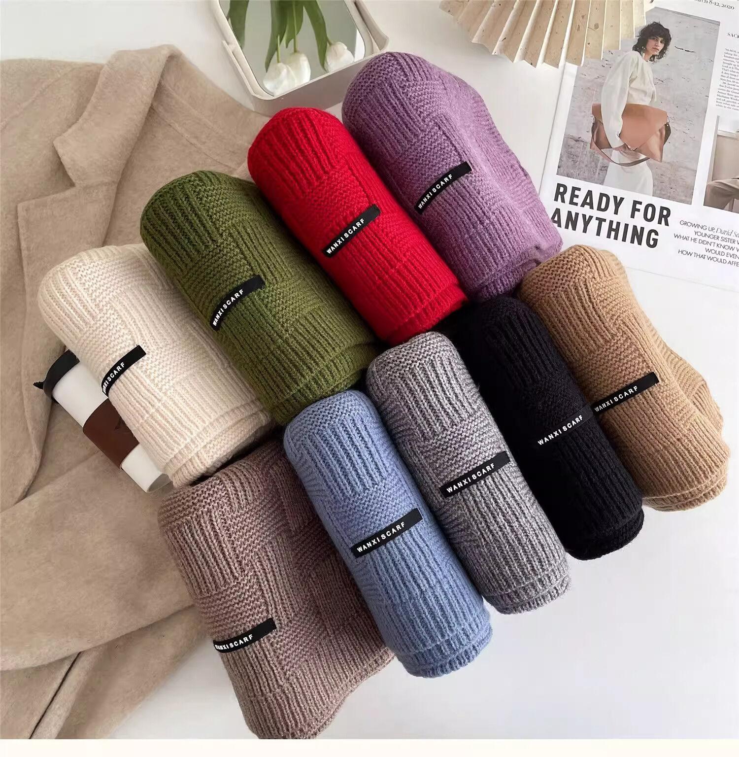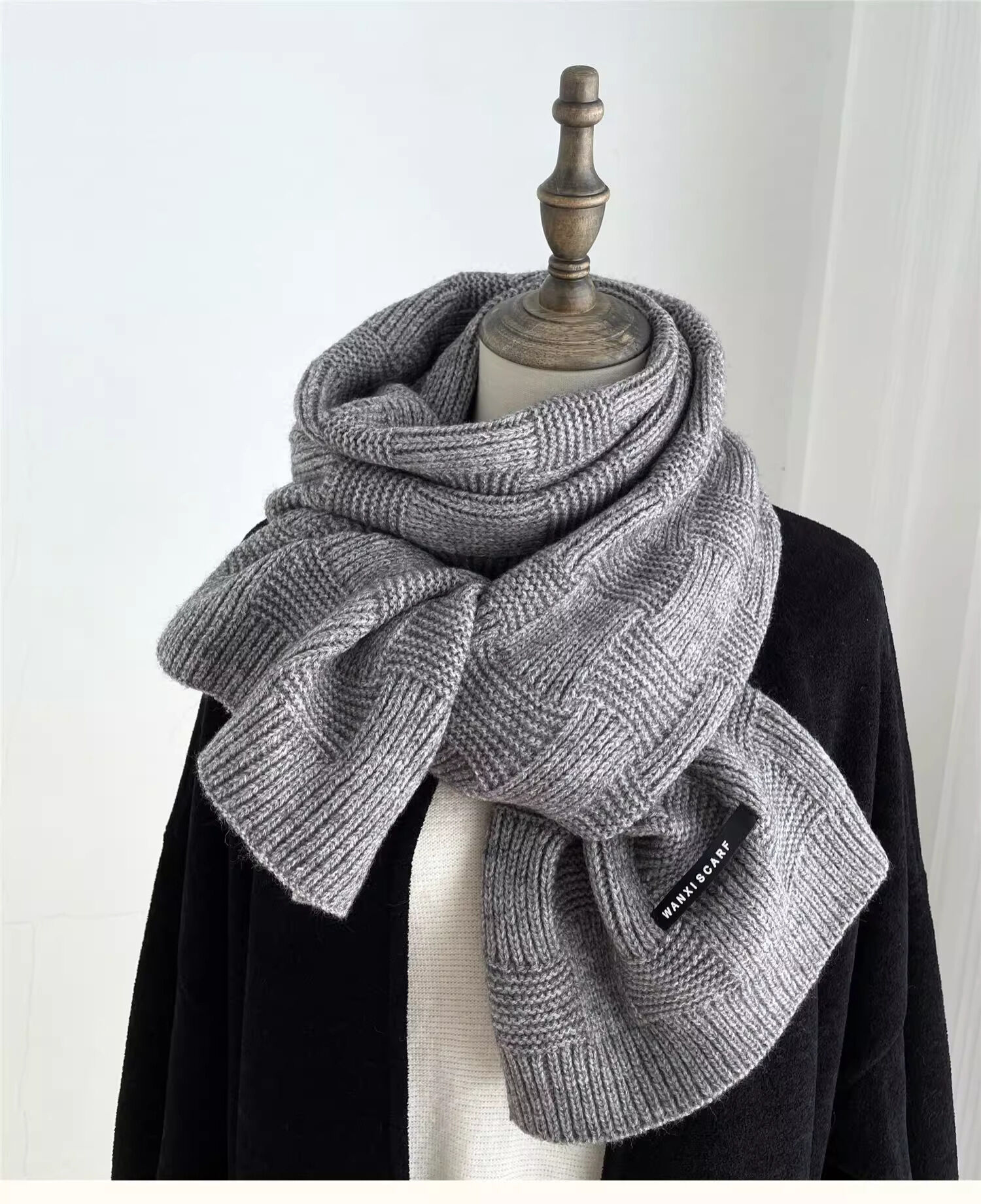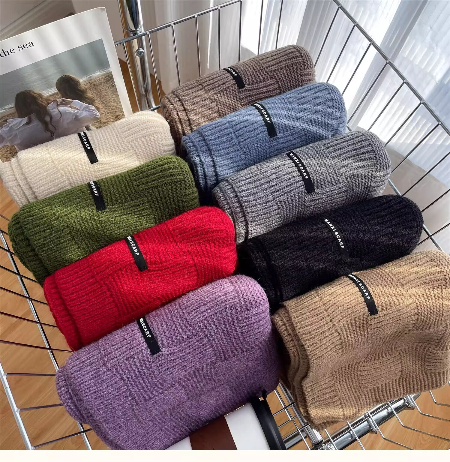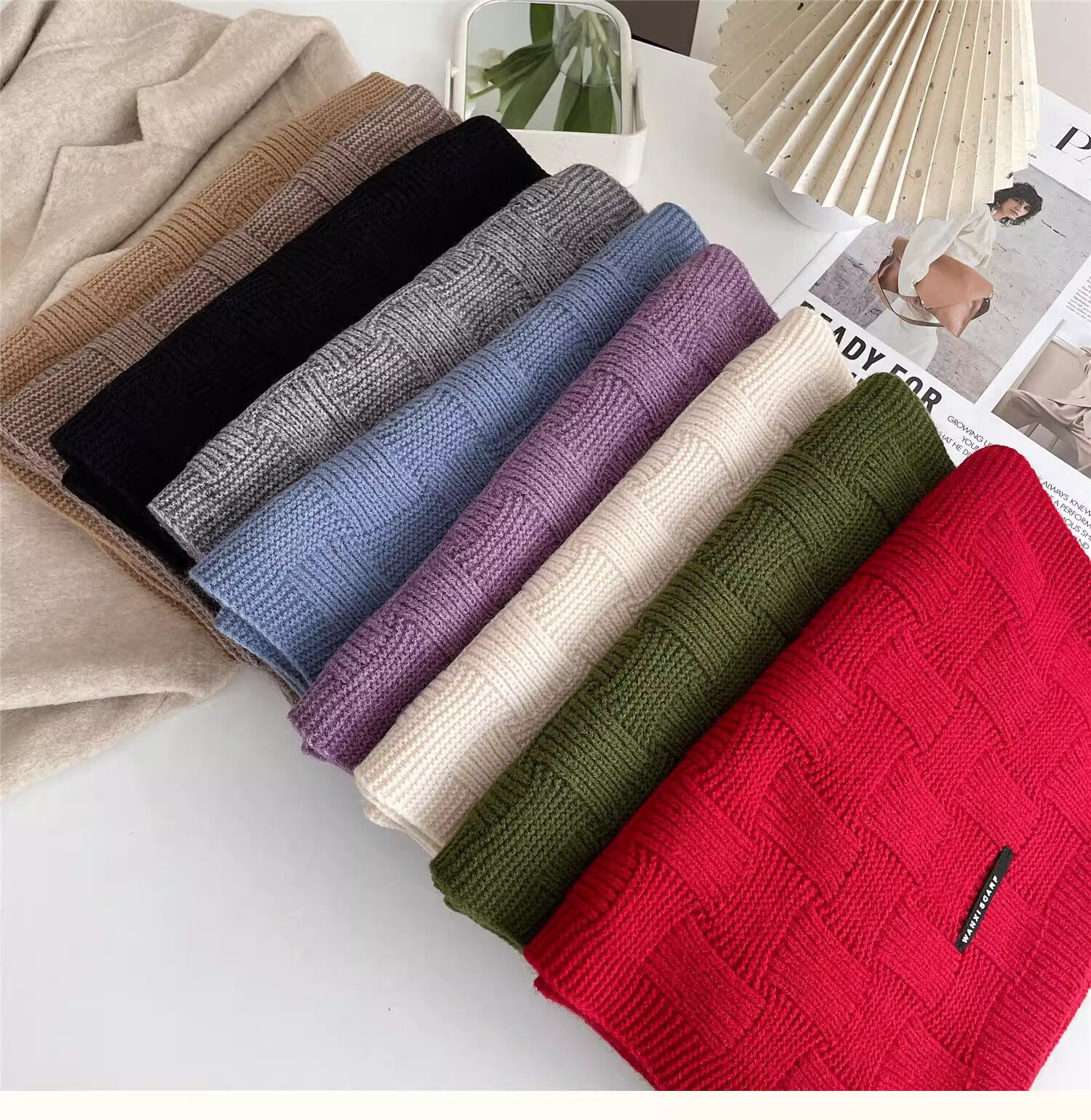 圍巾秋冬季純色毛線針織提花圍巾小香風韓版男女戶外保暖男女同款保暖圍巾百搭圍脖質感保暖圍巾素面圍巾韓版圍脖披肩長款披肩圍脖