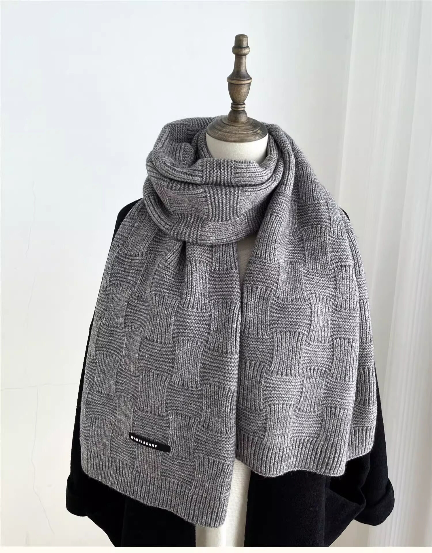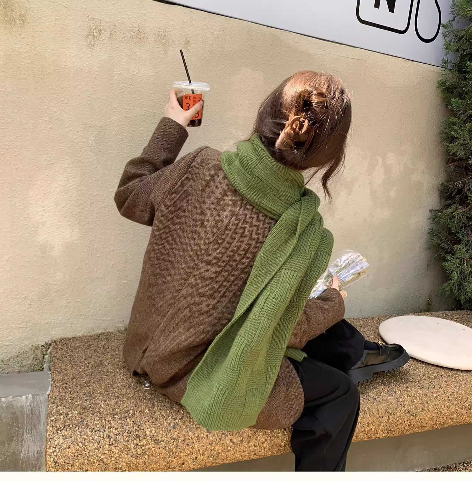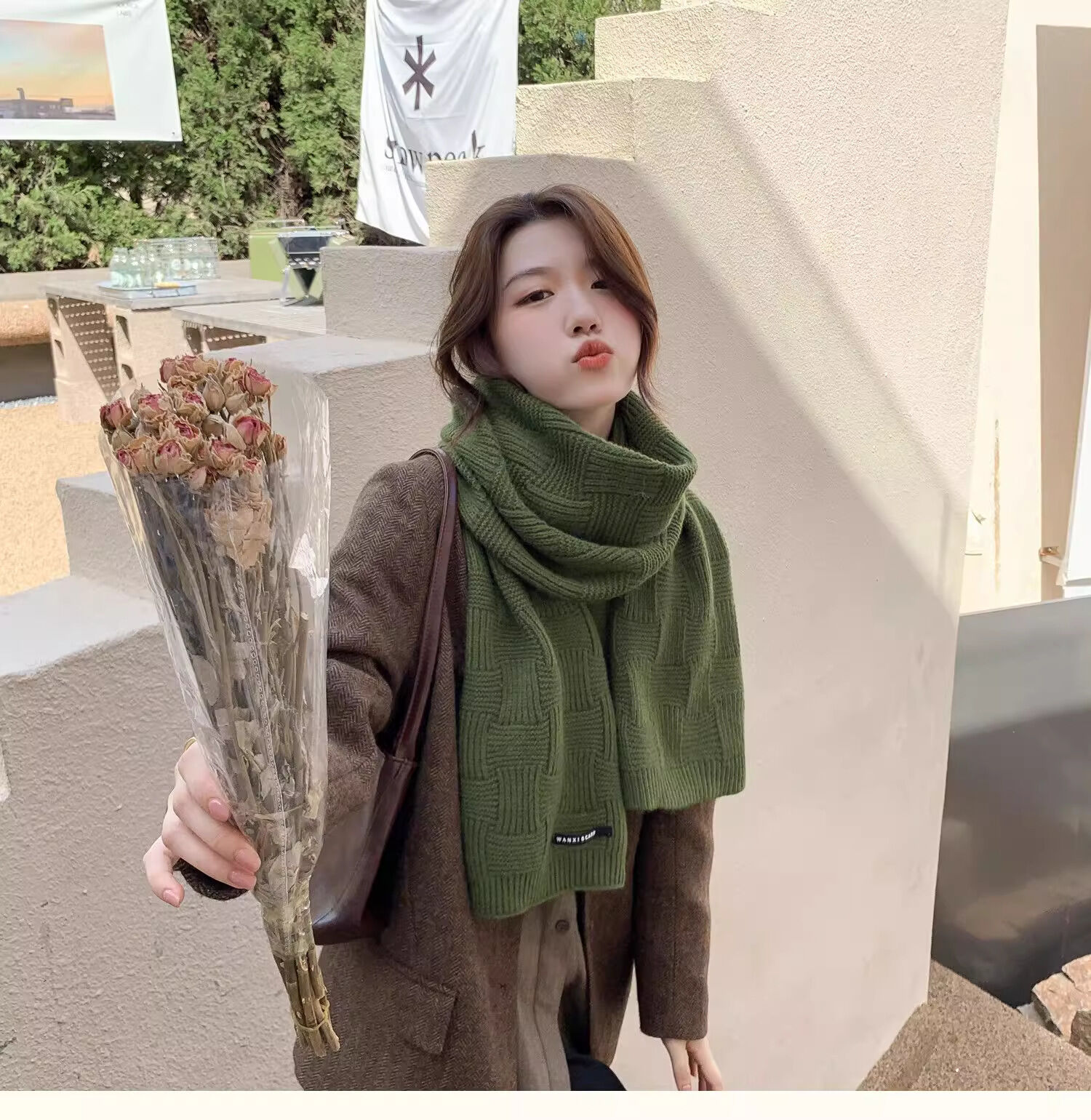 圍巾秋冬季純色毛線針織提花圍巾小香風韓版男女戶外保暖男女同款保暖圍巾百搭圍脖質感保暖圍巾素面圍巾韓版圍脖披肩長款披肩圍脖
