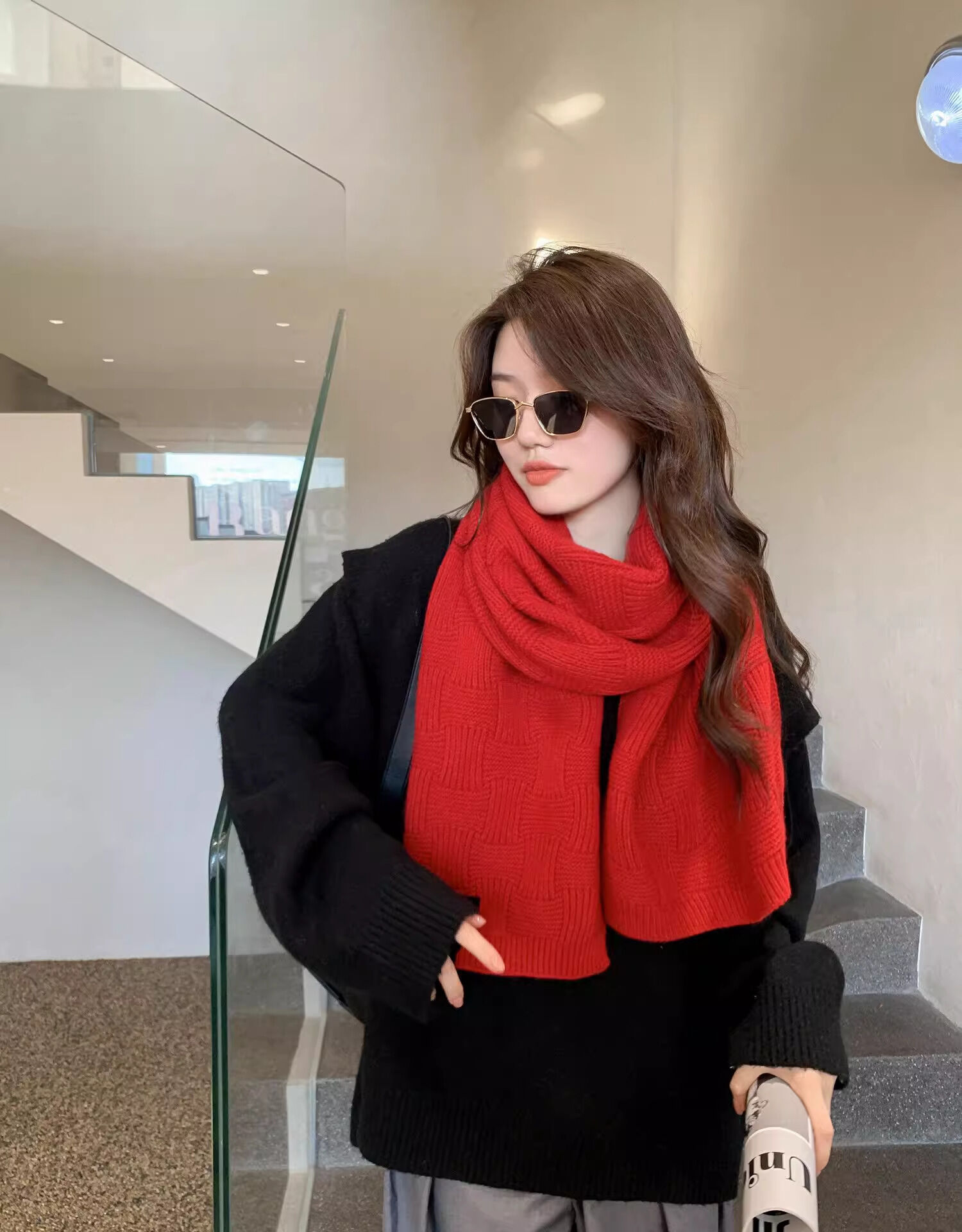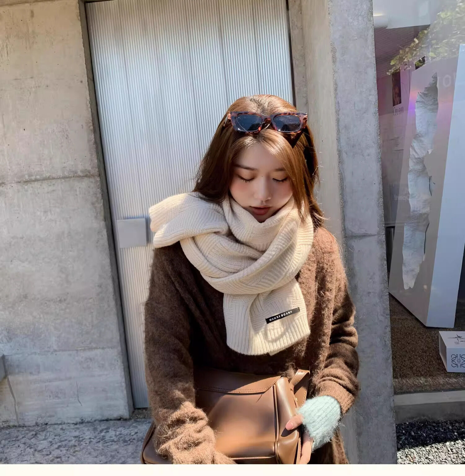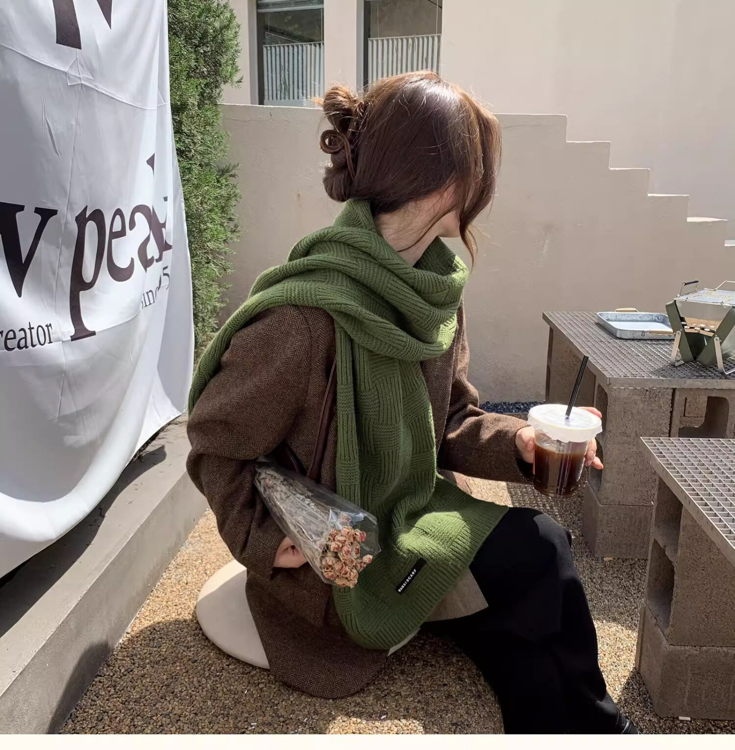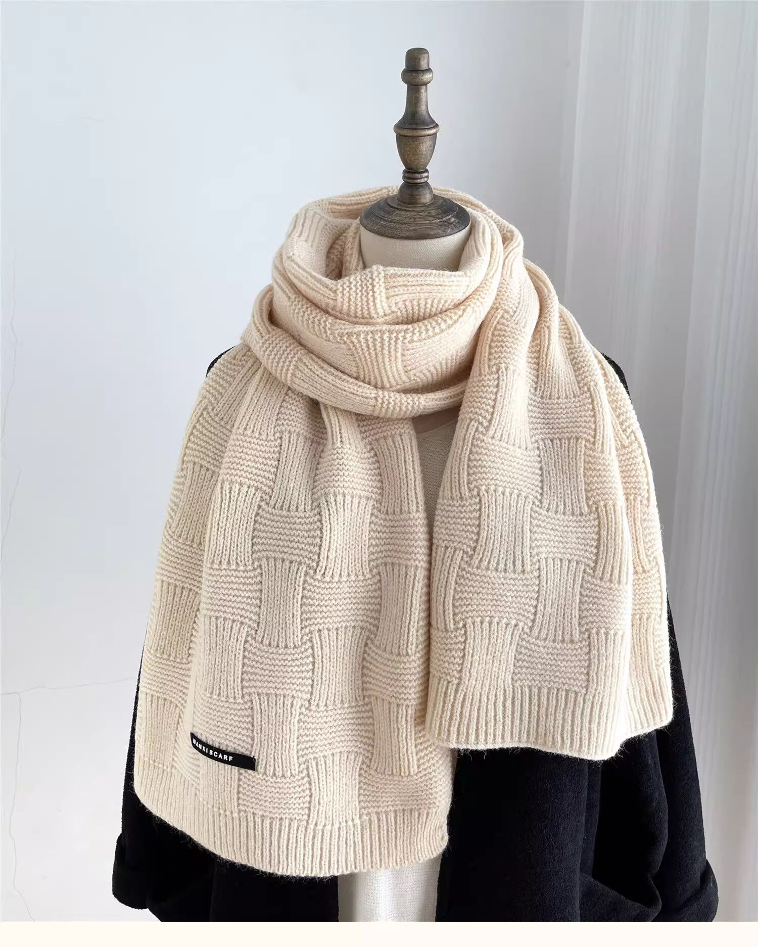 圍巾秋冬季純色毛線針織提花圍巾小香風韓版男女戶外保暖男女同款保暖圍巾百搭圍脖質感保暖圍巾素面圍巾韓版圍脖披肩長款披肩圍脖