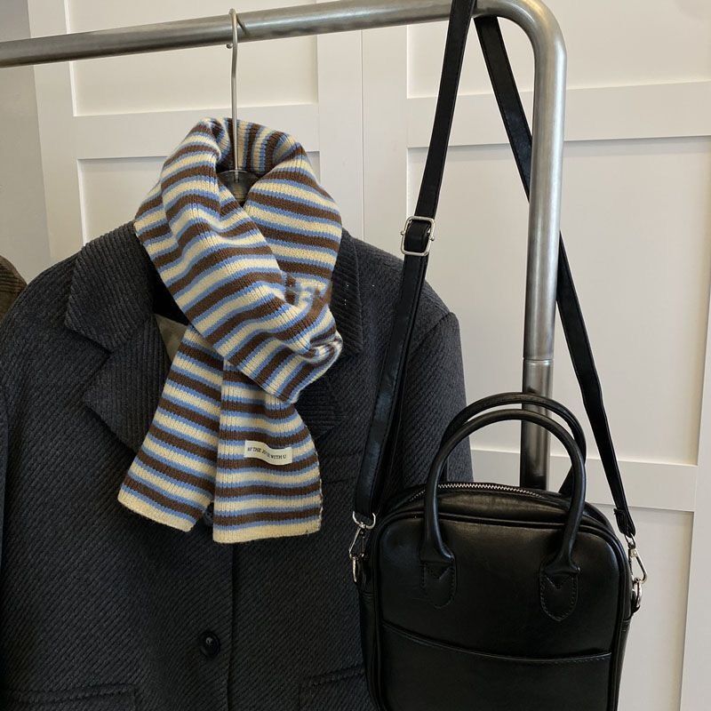圍巾女新款條紋針織圍巾女冬季高級感百搭可愛毛線圍脖男護頸保暖保暖披肩圍巾質感圍巾冷氣披肩空調百搭保暖圍脖防風圍脖韓版圍巾