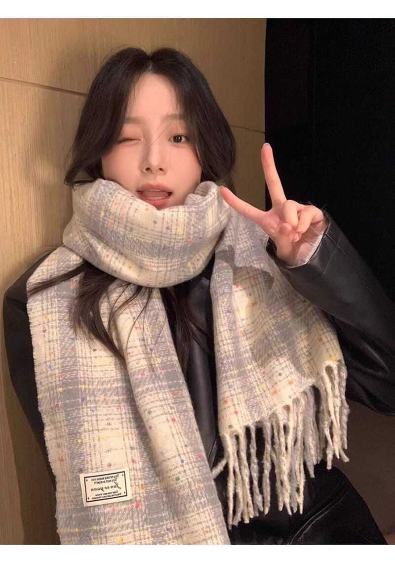 圍巾女新款韓版滿天星格紋圍巾女秋冬學生情侶披肩百搭保暖圍脖保暖披肩圍巾質感圍巾冷氣披肩空調百搭保暖圍脖防風圍脖韓版圍巾