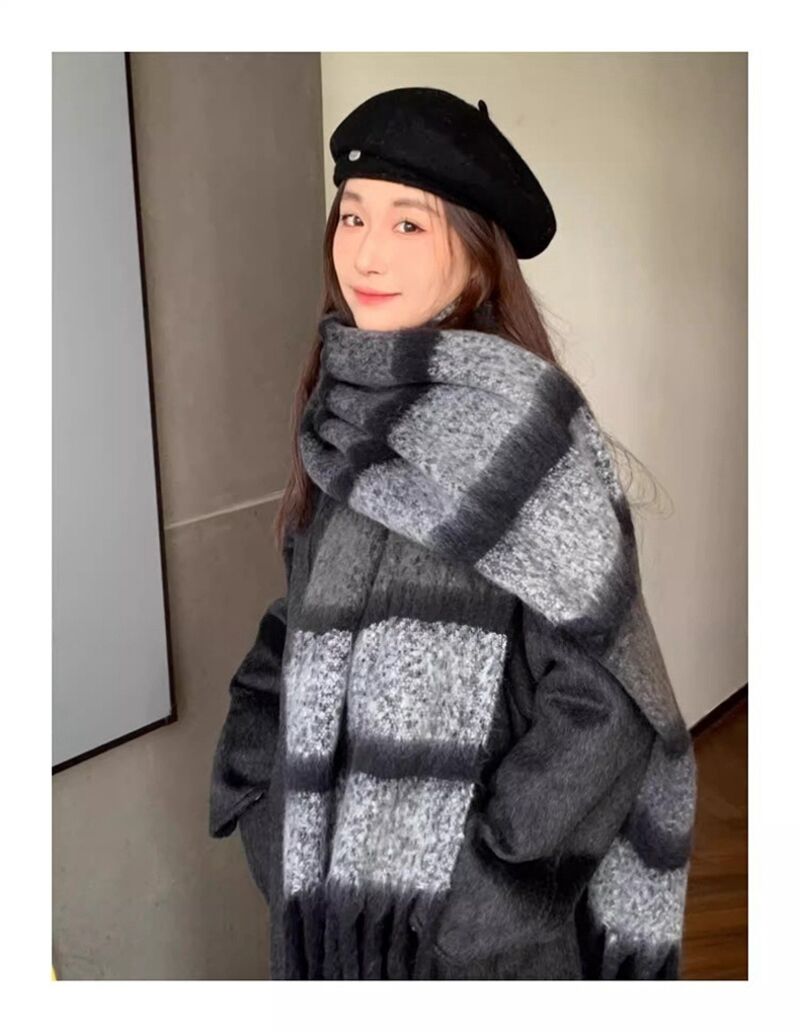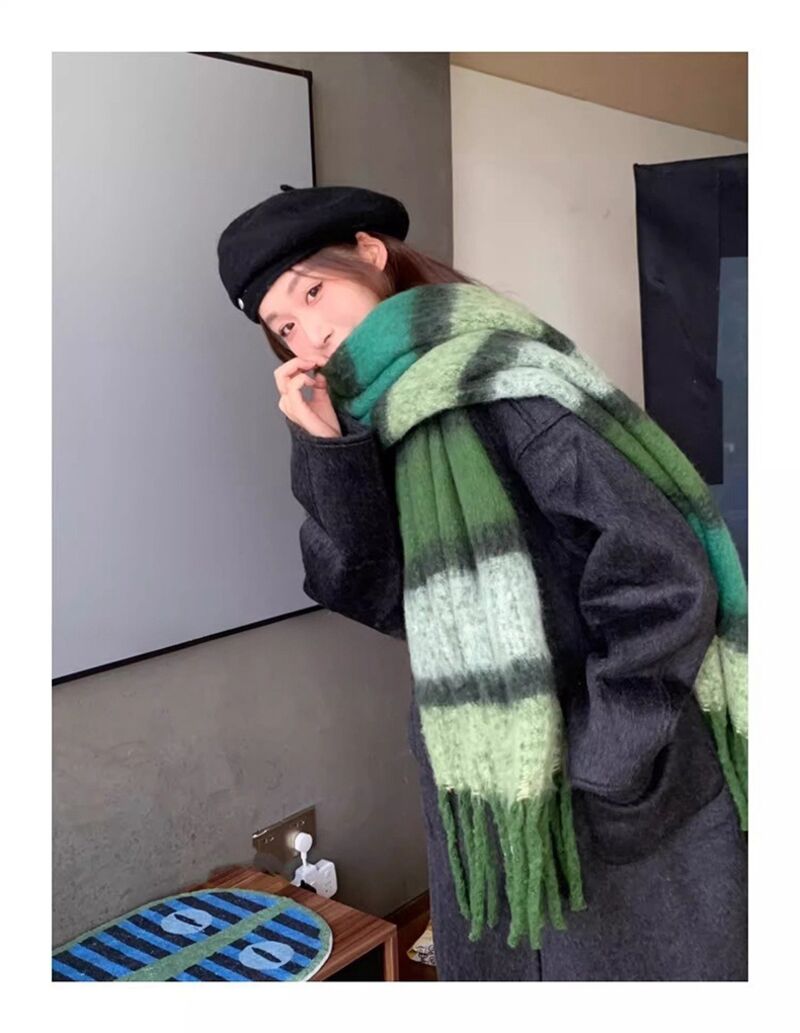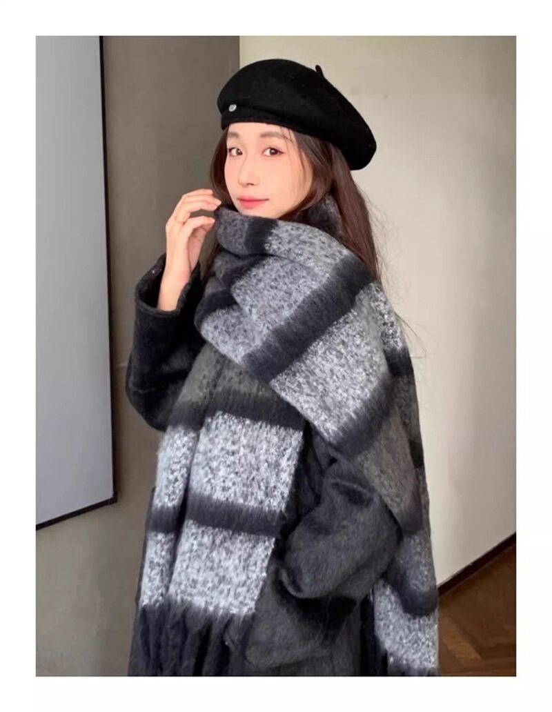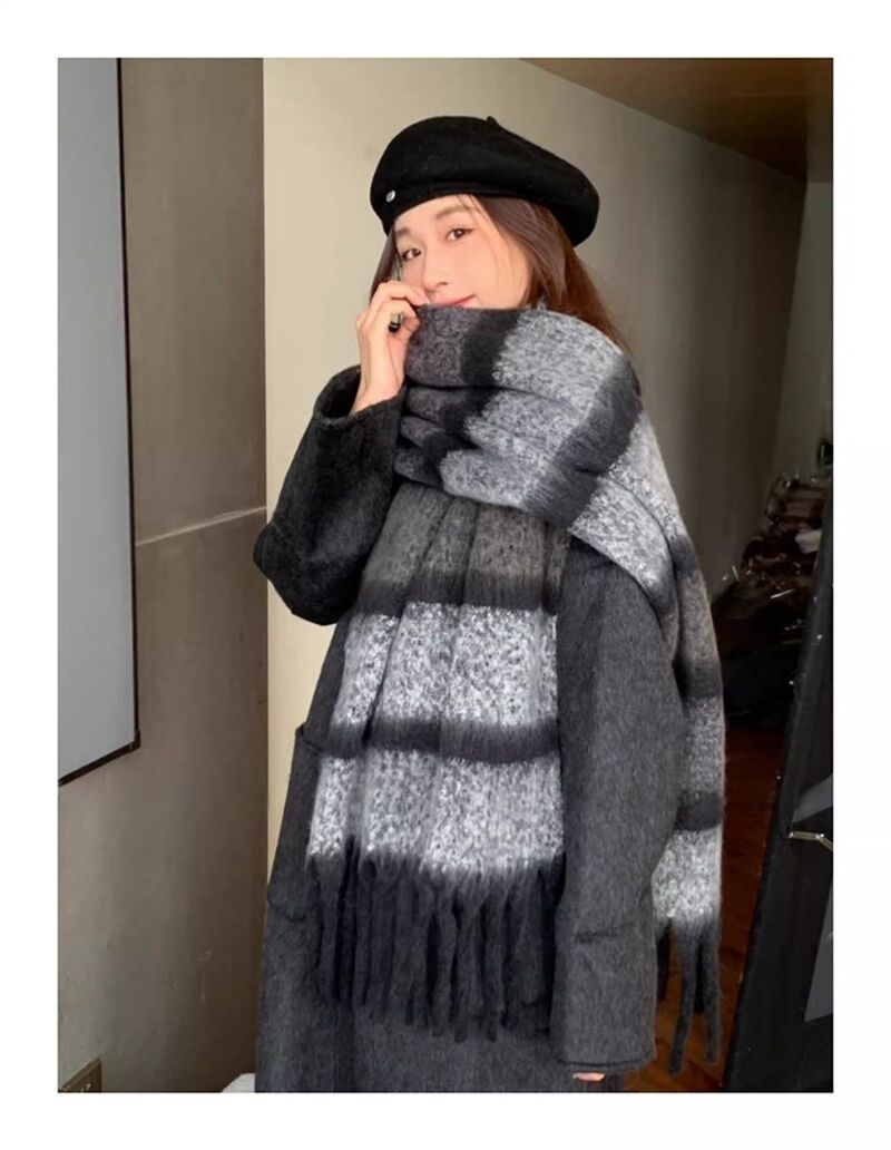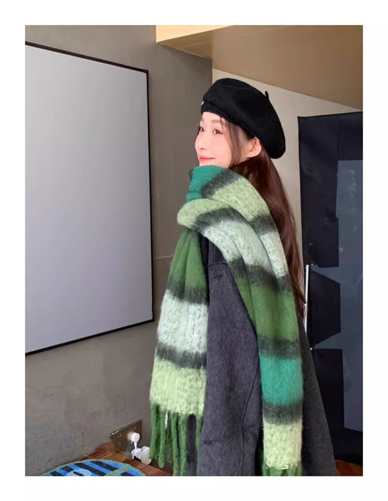 圍巾女條紋圍巾冬季女生高級感拉毛彩色保暖圍脖學生情侶披肩兩用保暖披肩圍巾質感圍巾冷氣披肩空調百搭保暖圍脖防風圍脖韓版圍巾