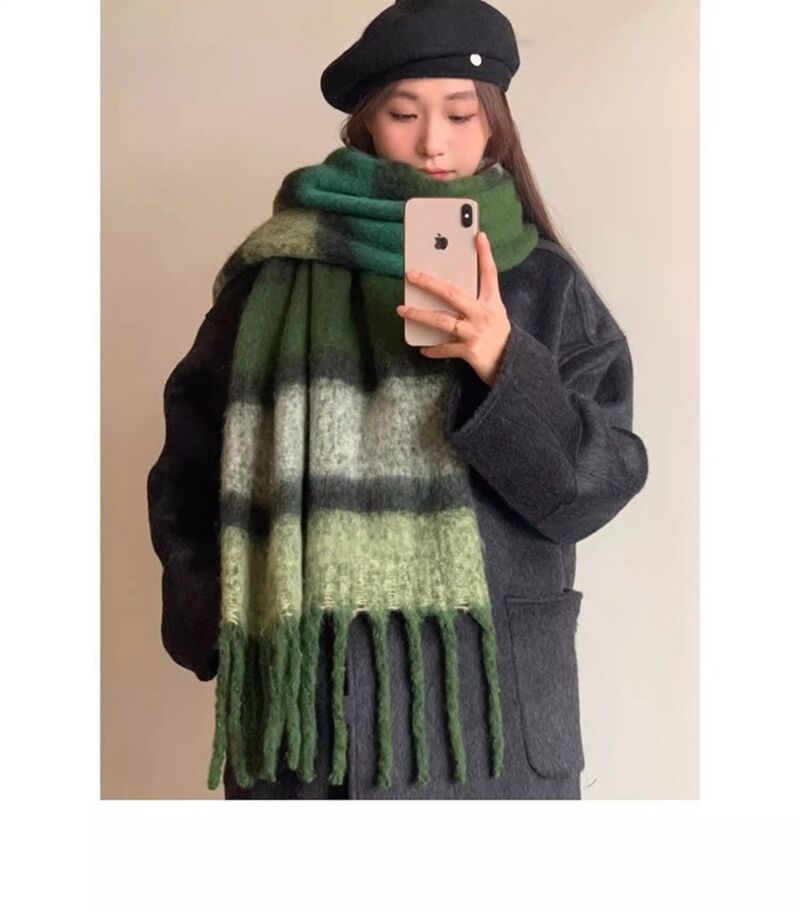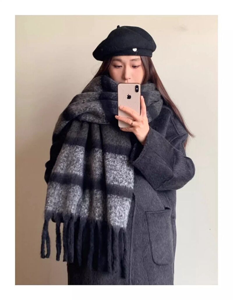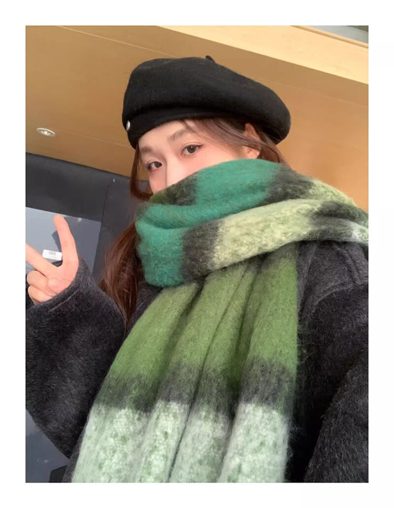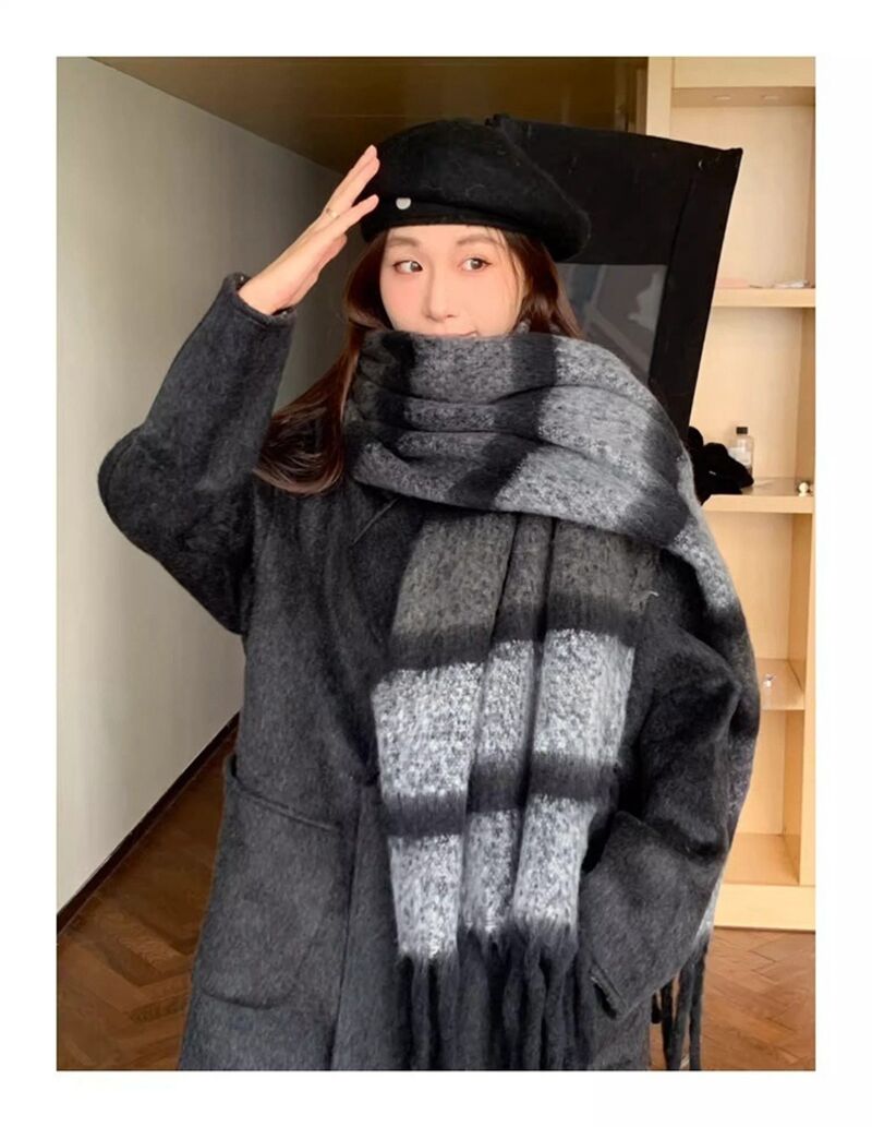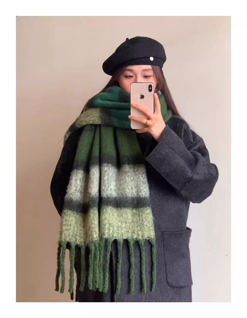 圍巾女條紋圍巾冬季女生高級感拉毛彩色保暖圍脖學生情侶披肩兩用保暖披肩圍巾質感圍巾冷氣披肩空調百搭保暖圍脖防風圍脖韓版圍巾