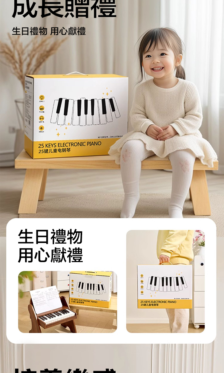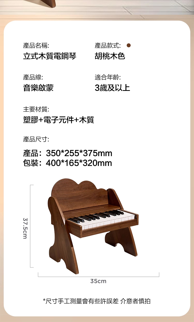 這次認真做了功課,終於挖到寶了!就是這臺25鍵立式木質電鋼琴!真的滿足了我對寶寶第壹臺鋼琴的所有幻想!👇