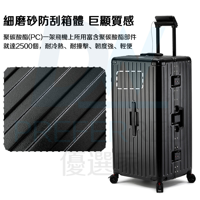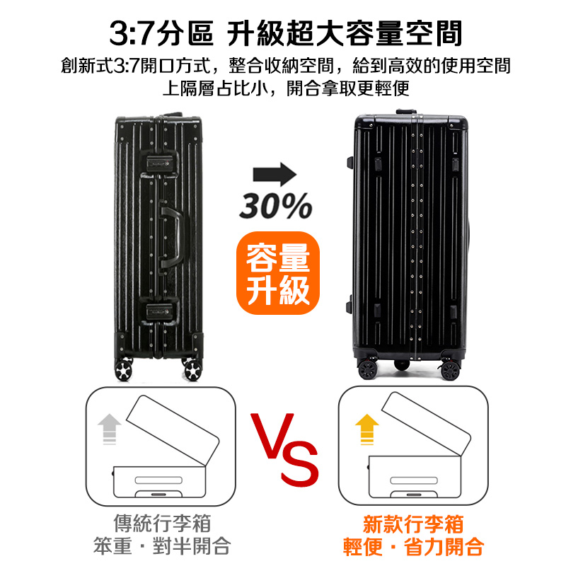 加厚鋁合金邊框+防爆角設計,抗壓強度提升50%,託運再也不怕暴力搬運!