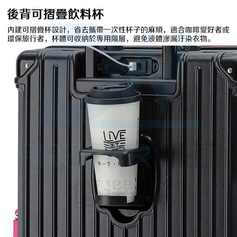 內建飲料杯架,機場狂奔也不怕飲料打翻~