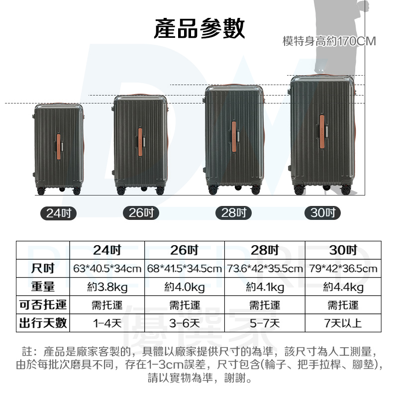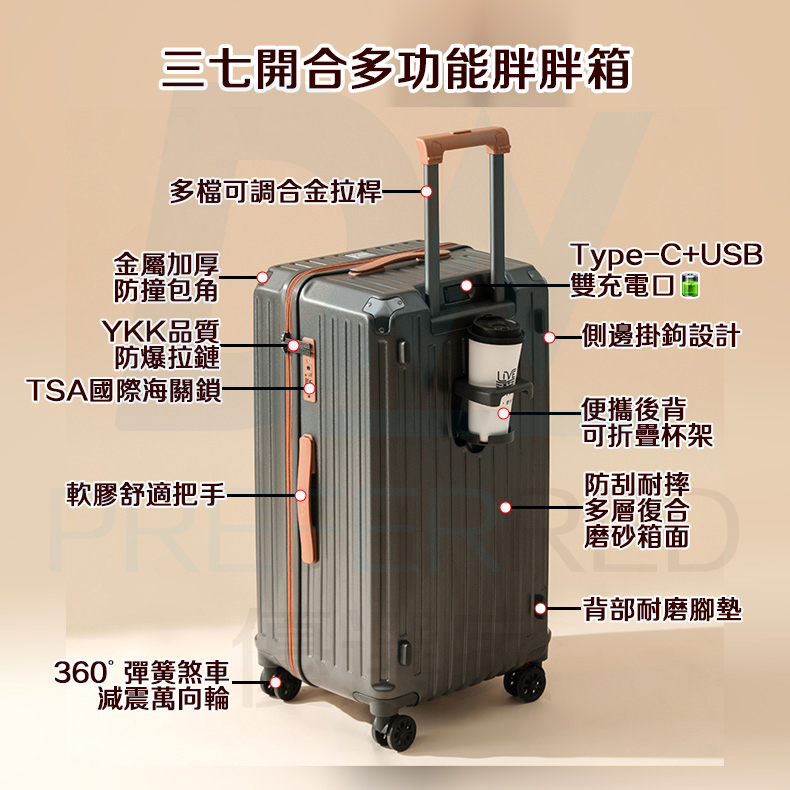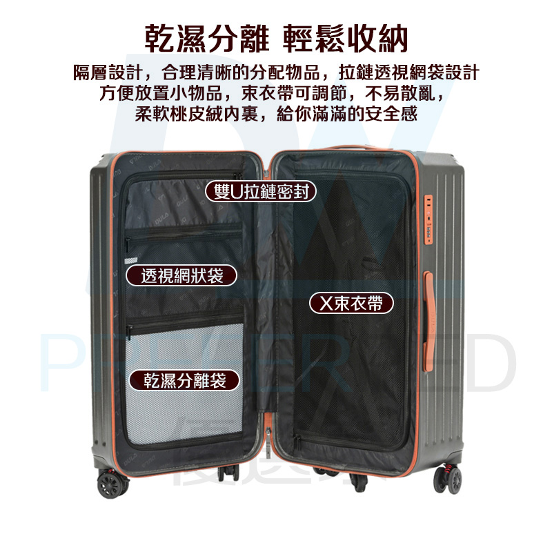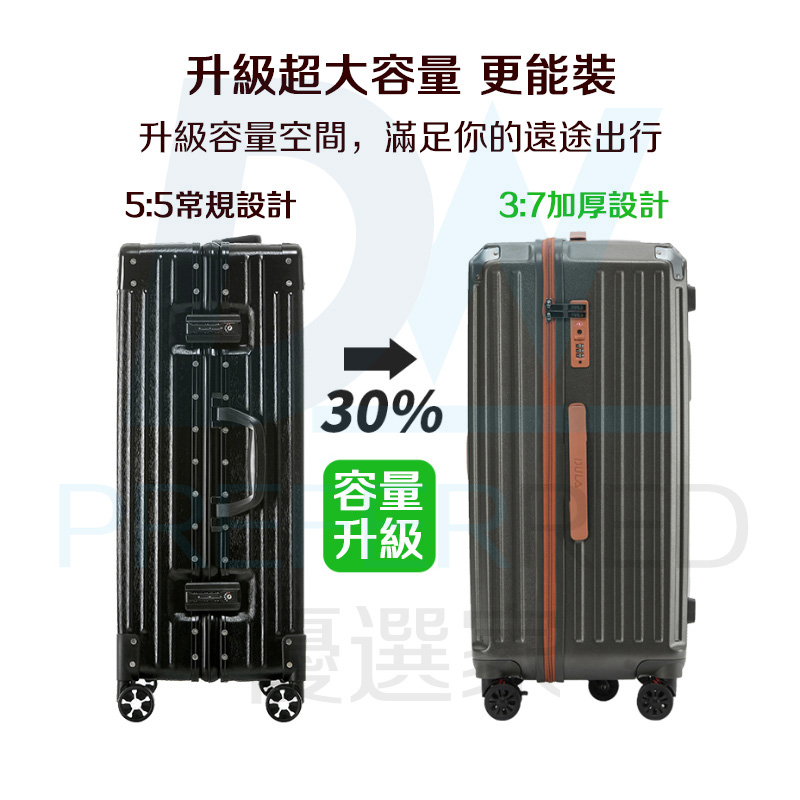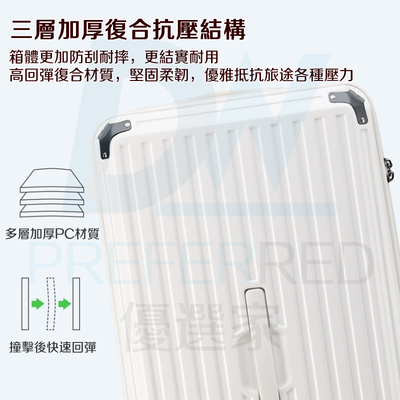 加固PC材質,比傳統行李箱輕30%,女生單手也能提