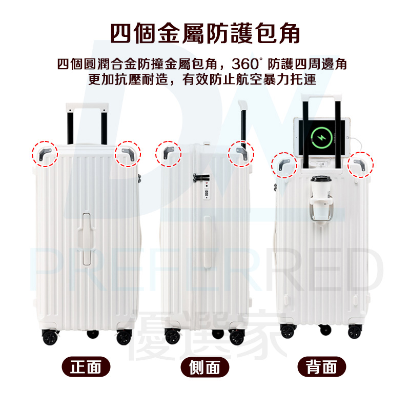 全包式鋁合金防撞包角,360°保護箱體,託運摔不爛!