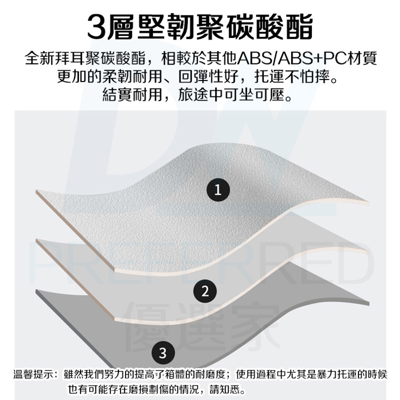 ▸ 升級3層蜂巢PC+ABS材質,比一般行李箱更耐撞!