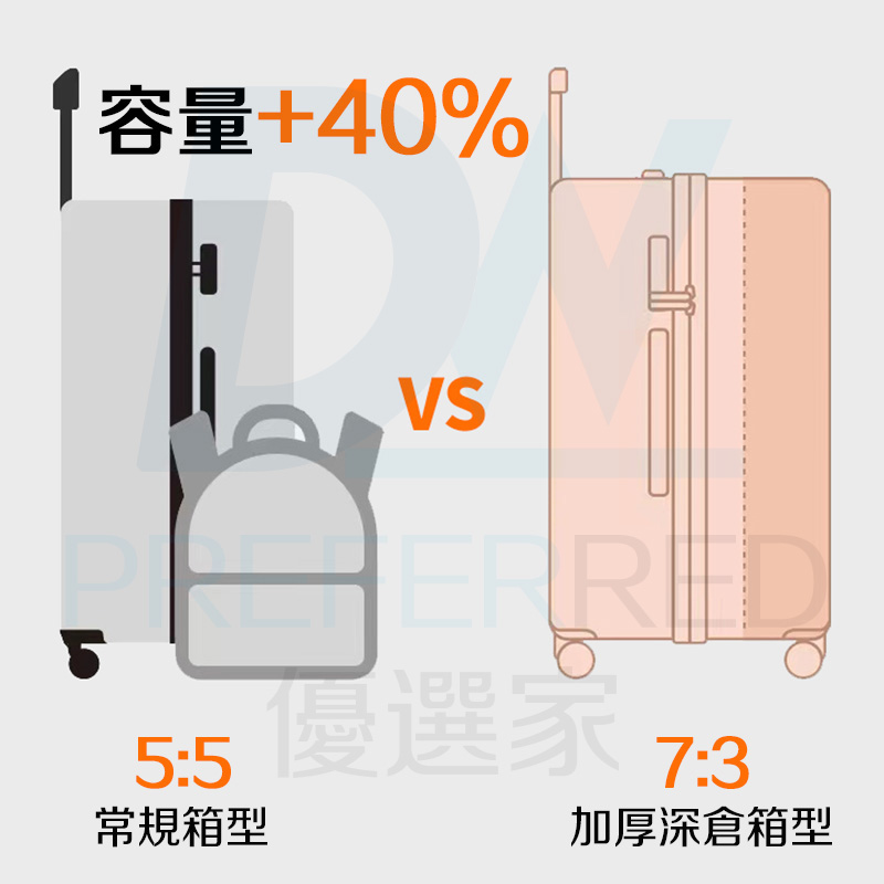 → 加大加深設計,比一般行李箱多裝20%!