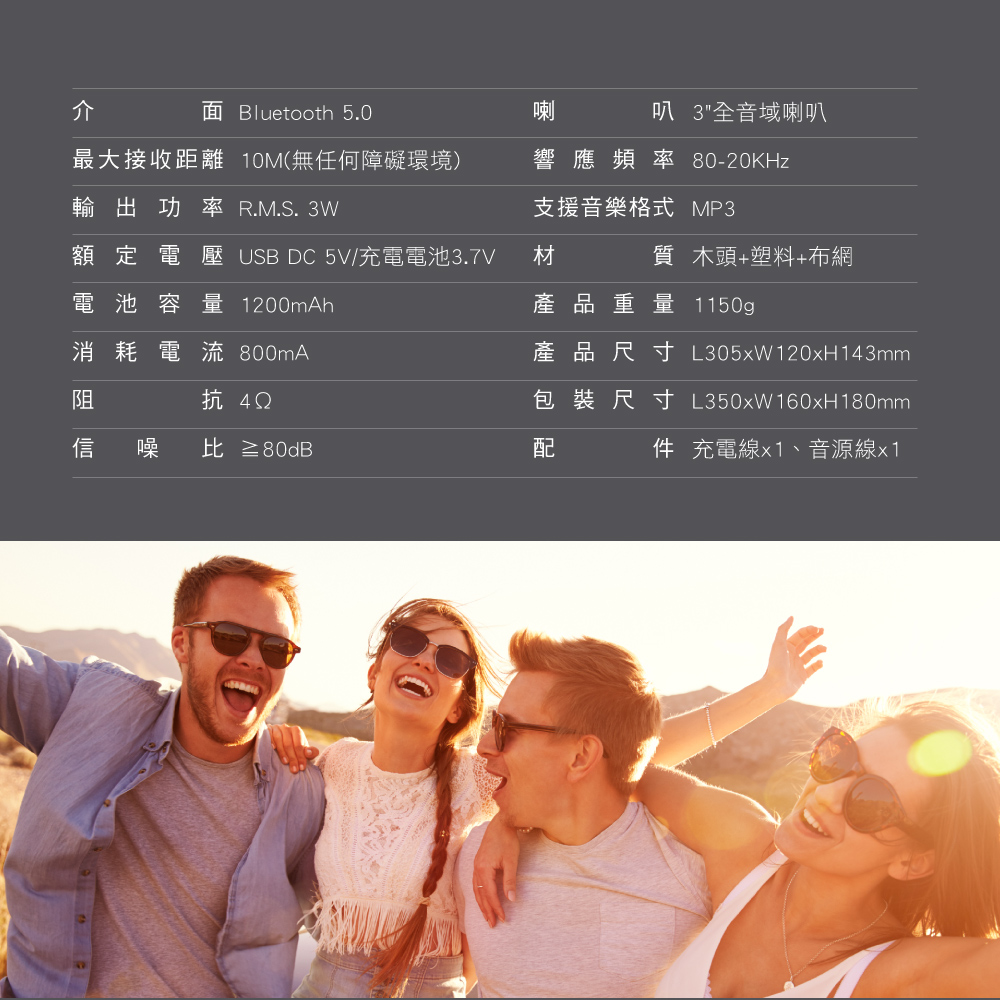可連接具3.5mm插孔的設備(如手機/電腦/MP3)播放音樂。