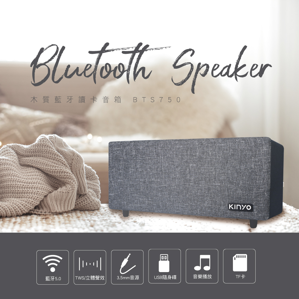 【KINYO】★官方直營★布面木質藍牙讀卡喇叭-福利品