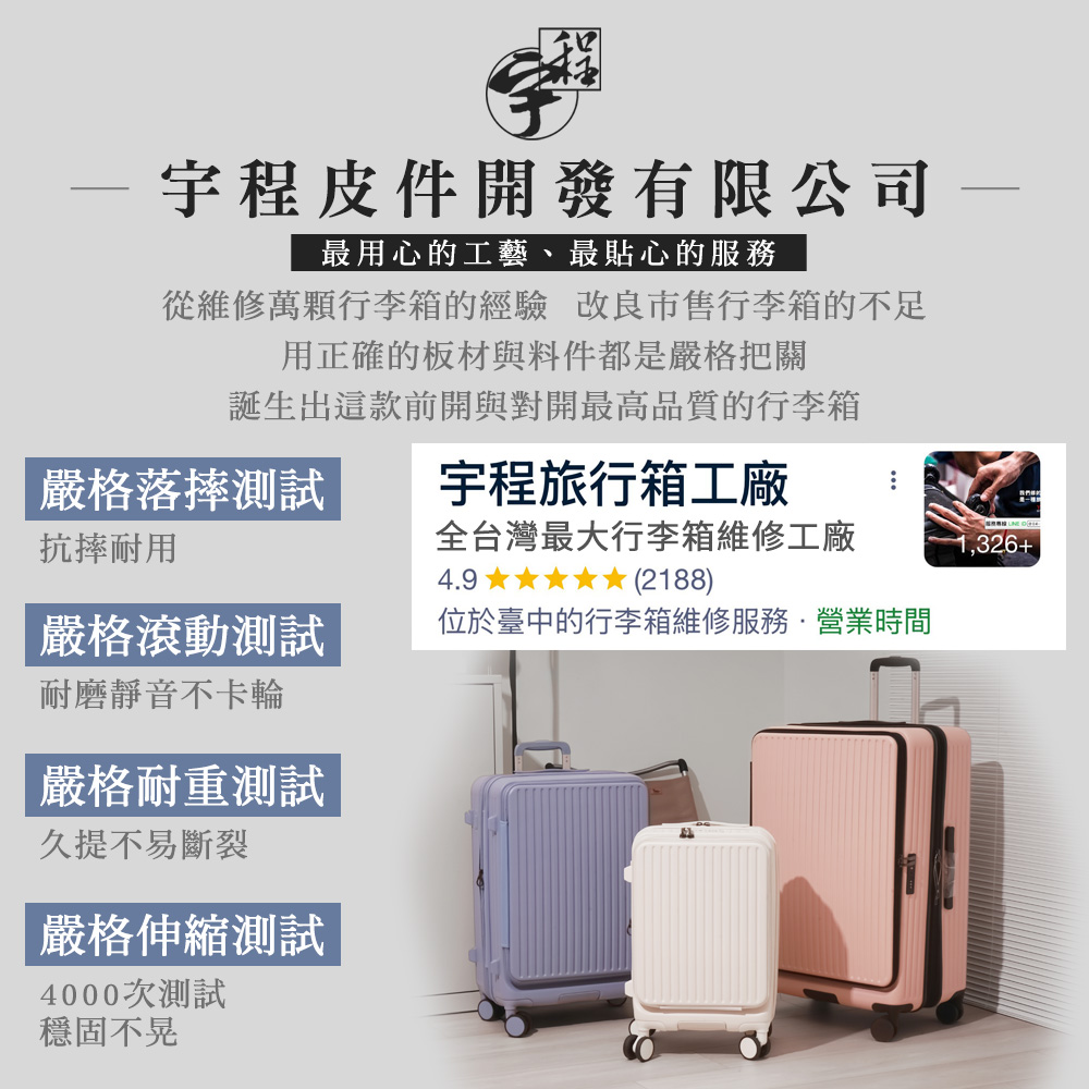 3.行李箱非無塵室製造,若有小擦傷及黑點屬正常現象並不會影響使用之功能性。