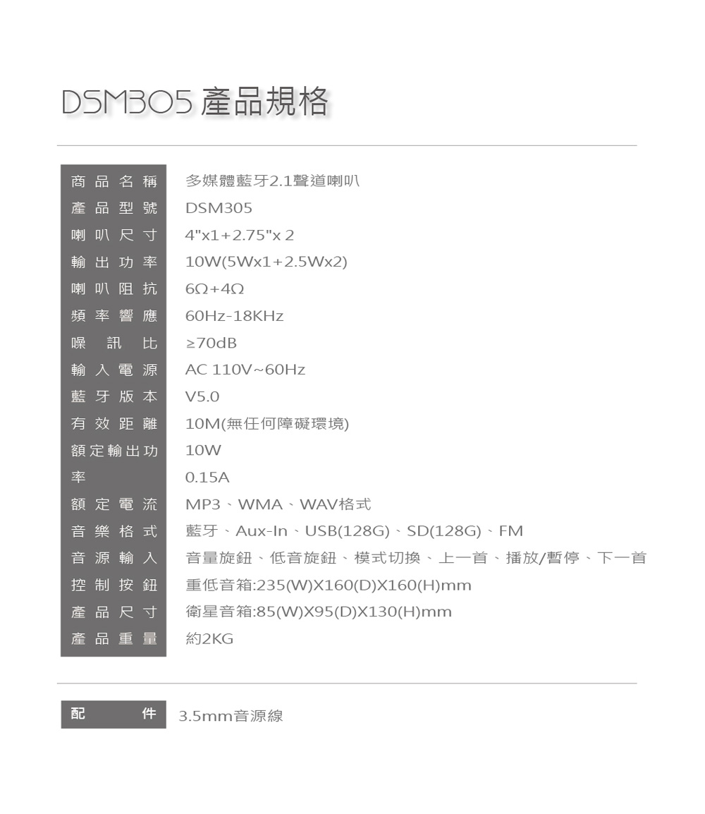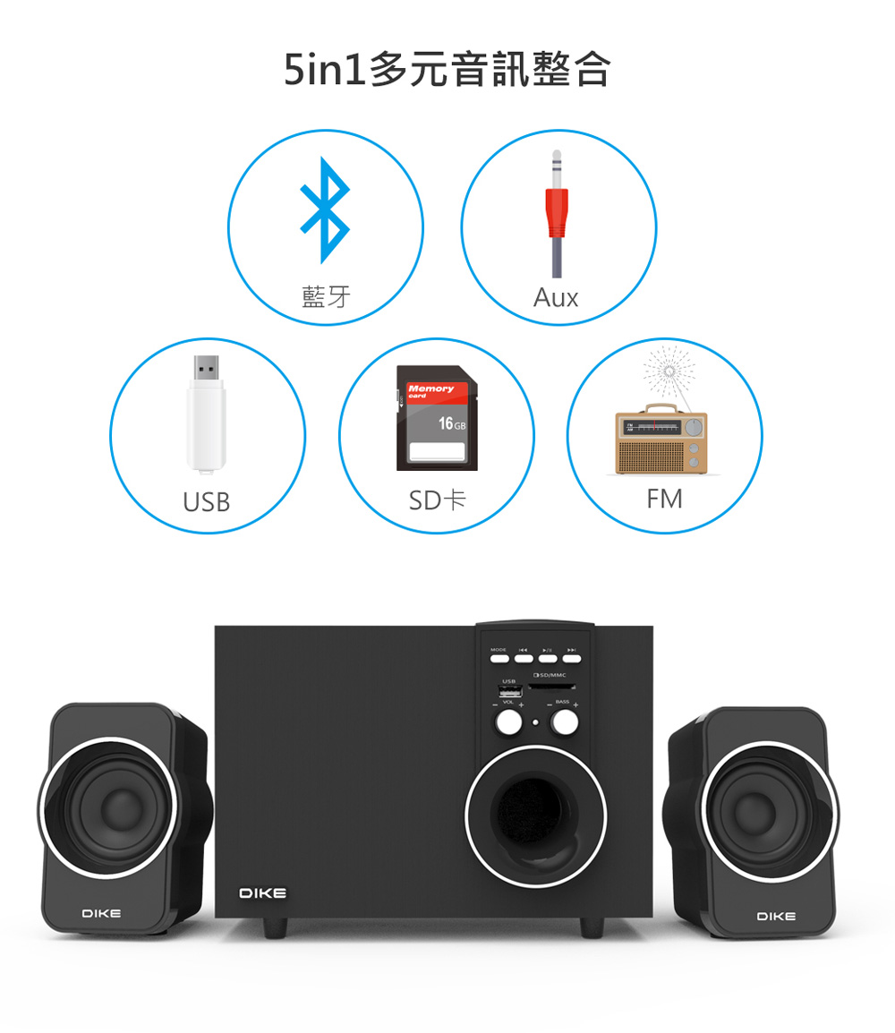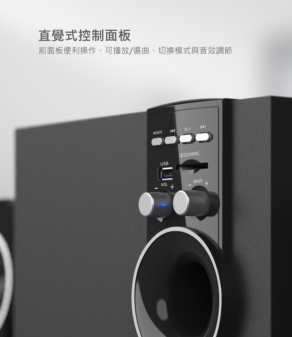 兼容藍牙/Aux/隨身碟/SD卡/FM播放模式