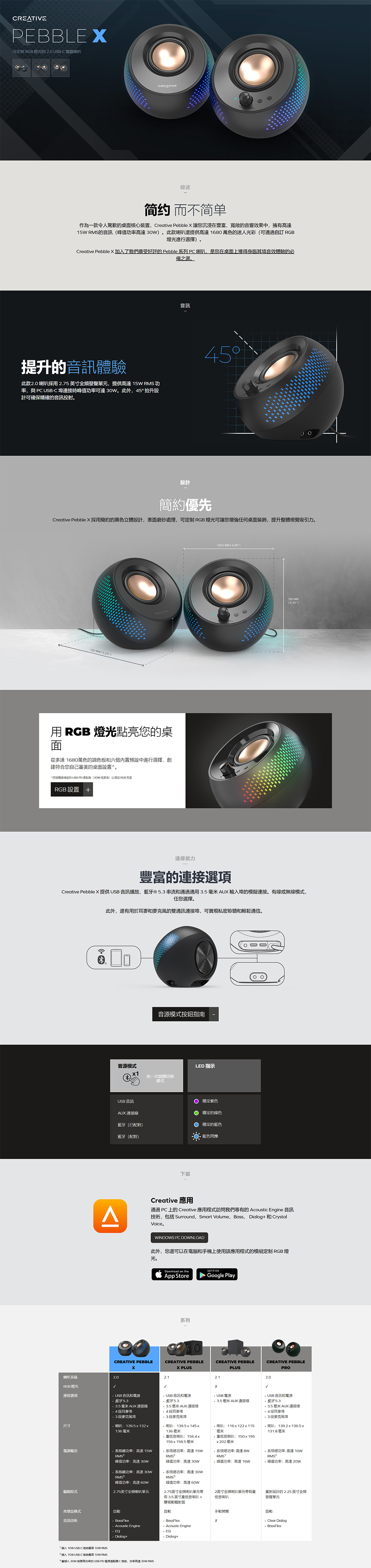 作為一款令人驚歎的桌面核心裝置,Creative Pebble X 讓您沉浸在豐富、寬敞的音響效果中,擁有高達 15W RMS的音訊峰值功率高達 30W。