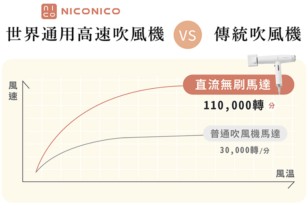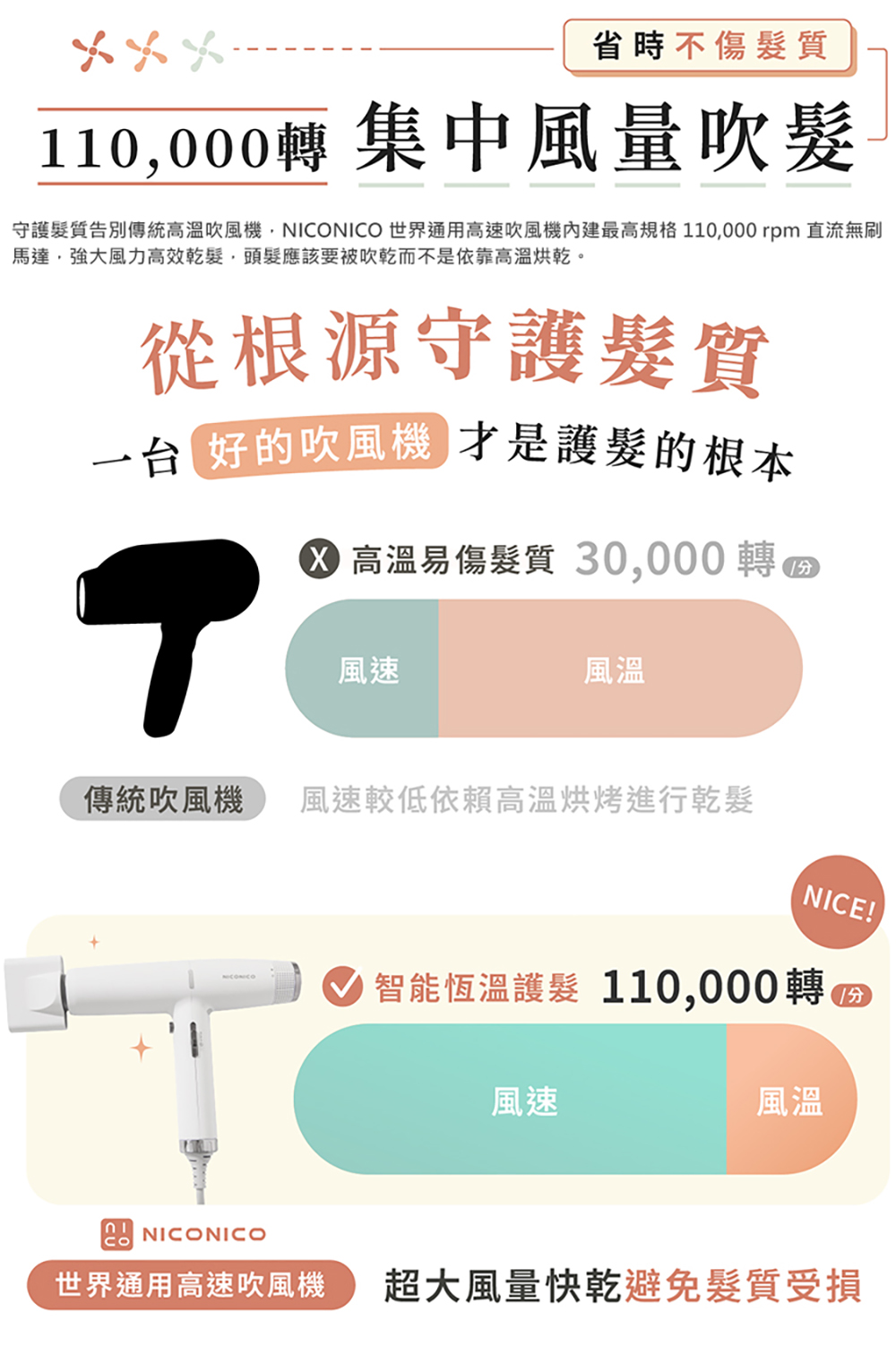 ▎110,000轉集中風量吹髮,避免高溫傷髮