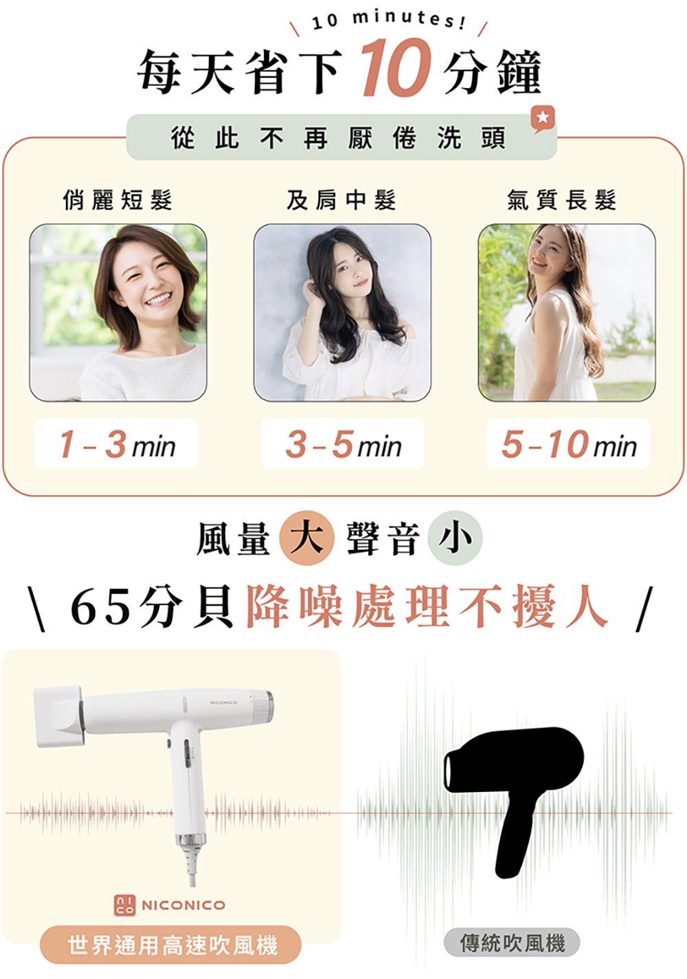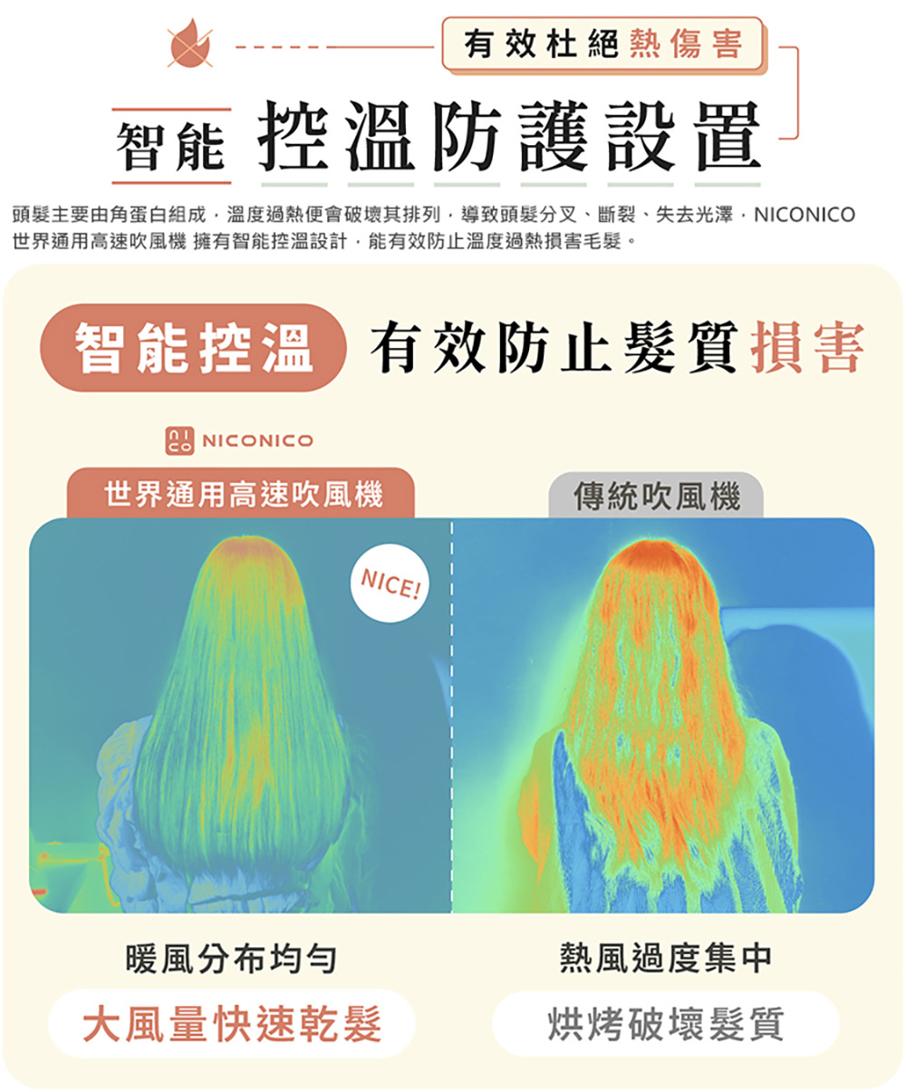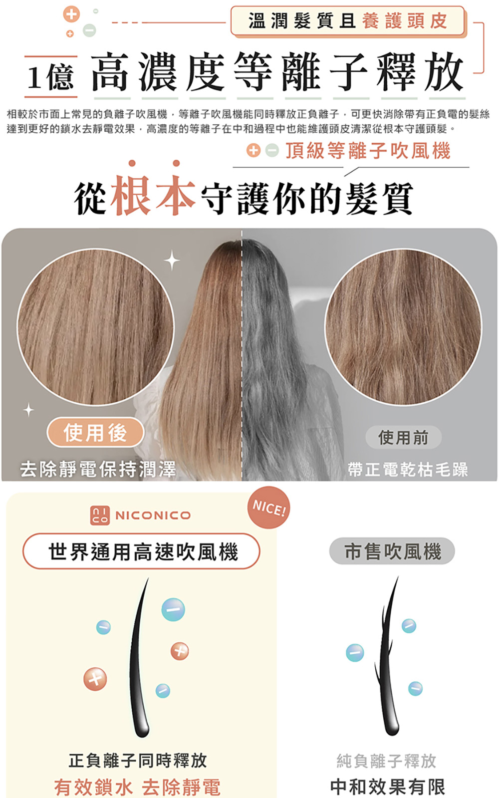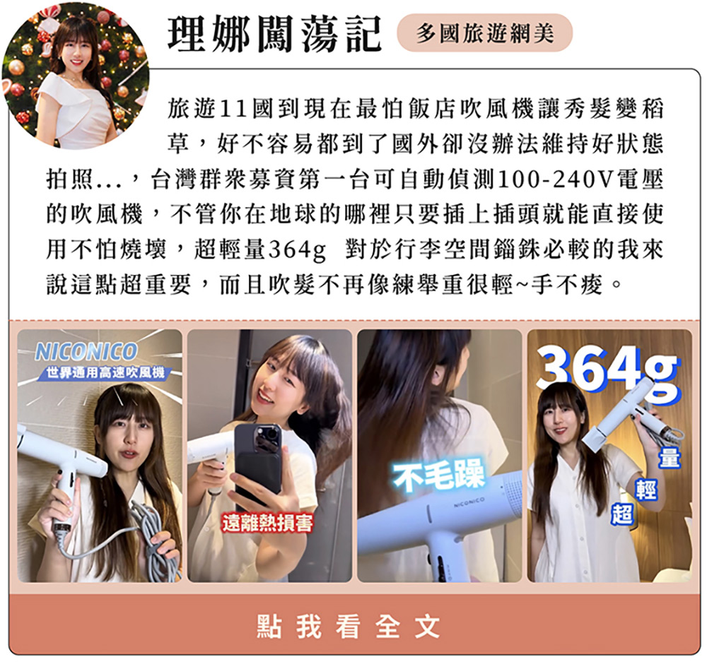 NICONICO 世界通用高速吹風機,搭載自動電壓設計,100~240V 全球通用,出國攜帶最安心。