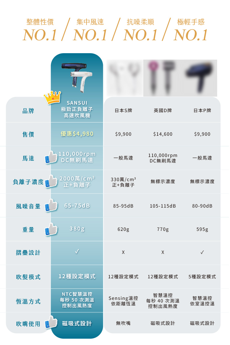 【SANSUI 山水】極勁正負離子高速吹風機 摺疊吹風機 Neptunus/Pure