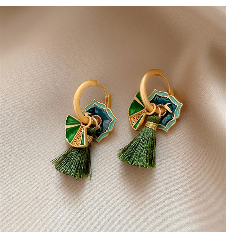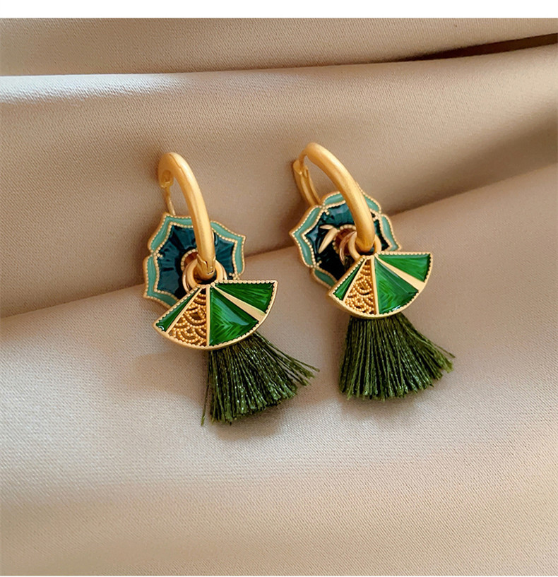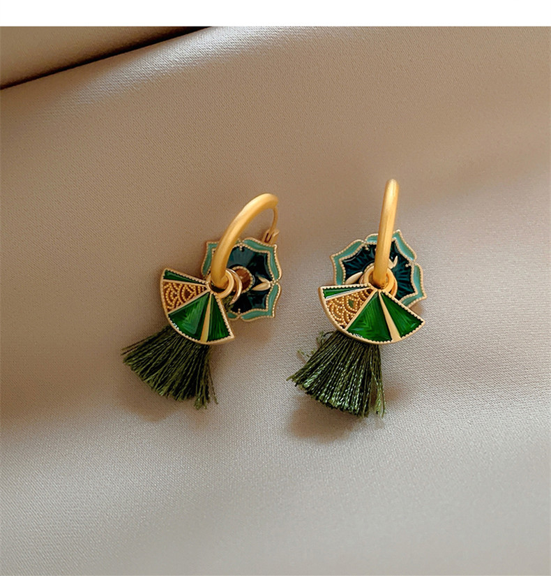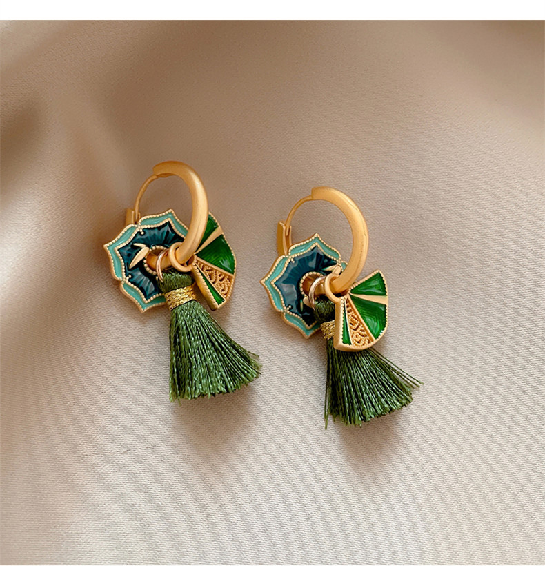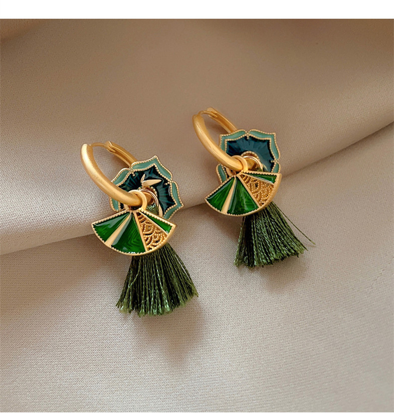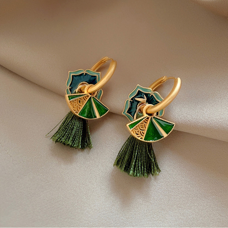 🎗飾間首飾鋪 新中式復古國潮琺瑯滴釉扇子女輕奢氣質耳環2025新款小眾耳飾