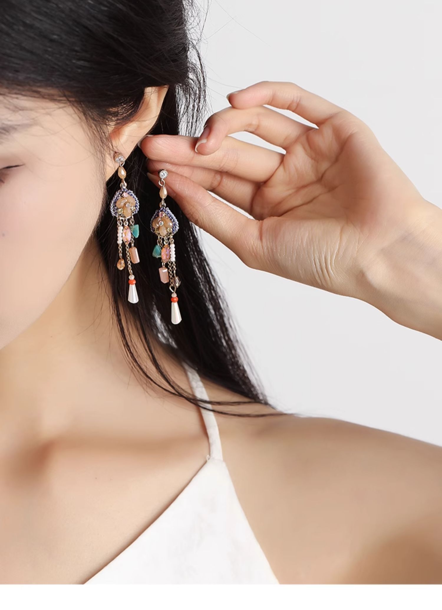 🎗飾間首飾鋪 醉夢流蘇耳環女高級設計感民族風氣質銀針耳環獨特小眾耳飾