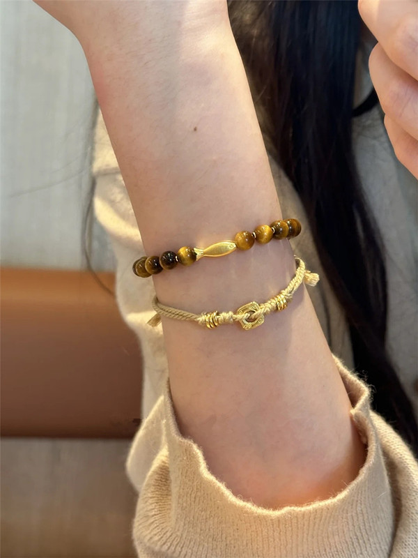 🎗飾間首飾鋪 虎眼石串珠金色錦鯉手鍊小眾設計美拉德手串