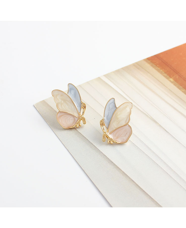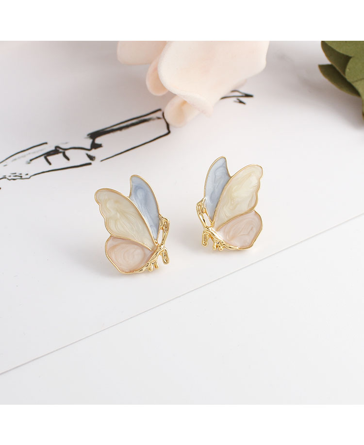 🎗飾間首飾鋪天藍色撞色蝴蝶耳環韓國森系小清新甜美優雅超仙無耳洞耳夾耳飾女