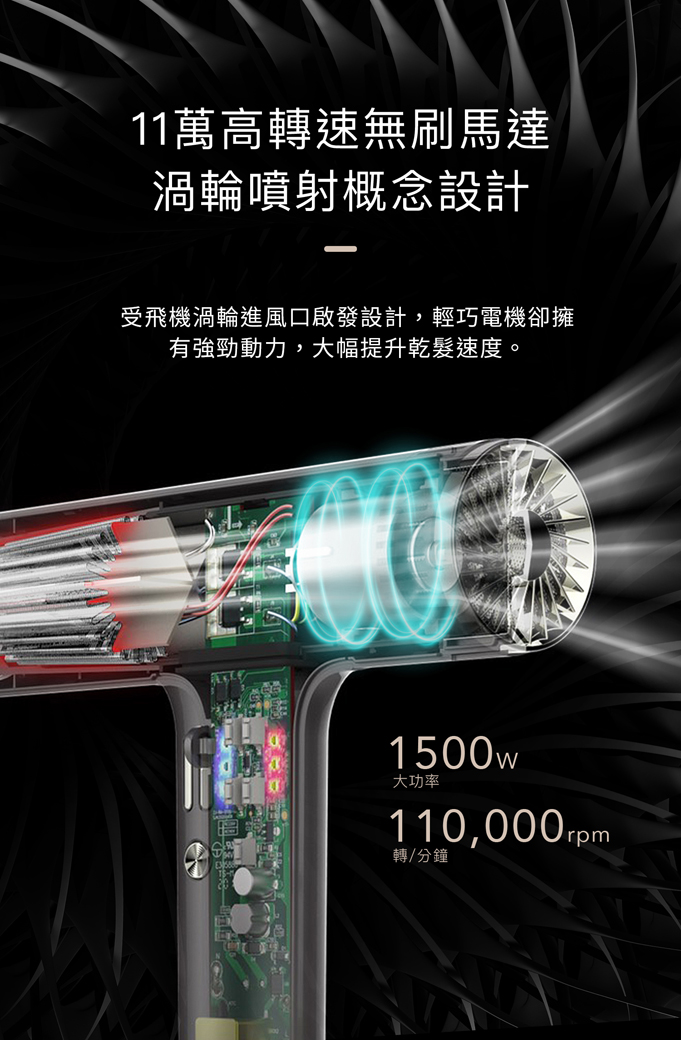 ● 強勁風力11萬轉渦輪動力