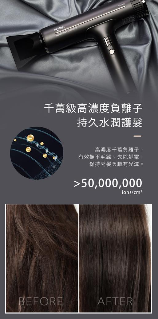 ● 千萬負離子保持髮絲水潤絲滑