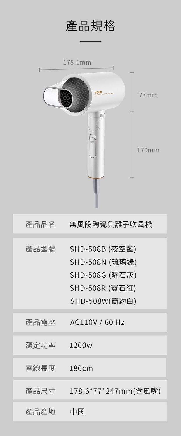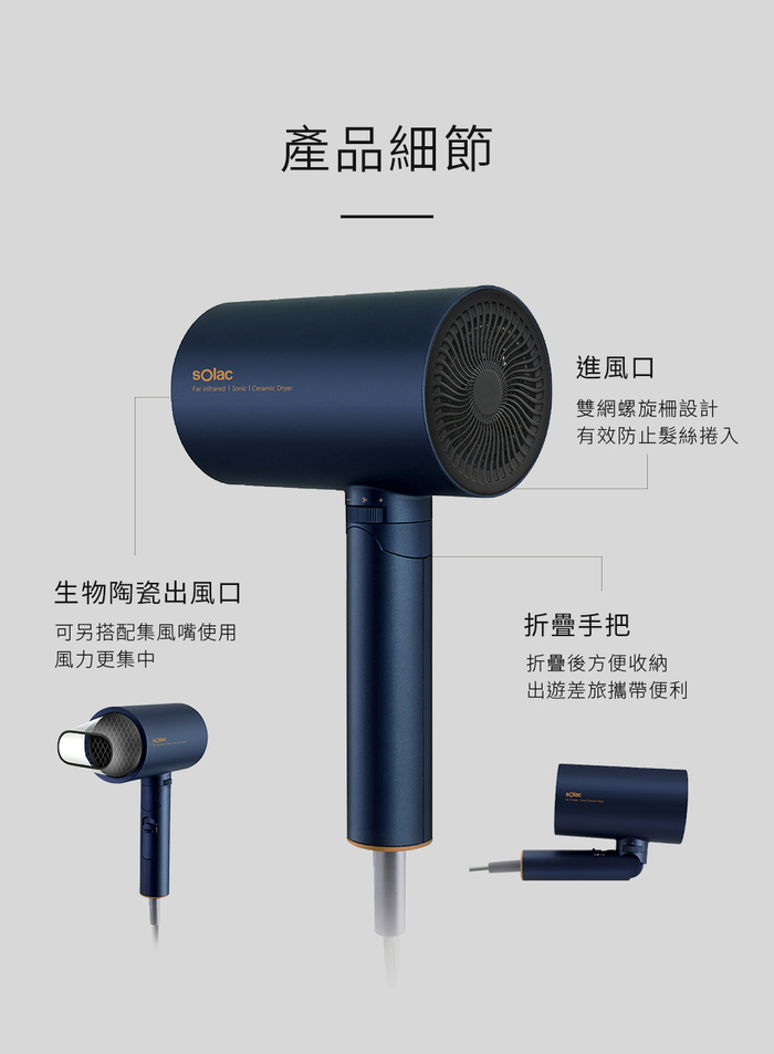 【SOLAC】負離子生物陶瓷吹風機SHD-508