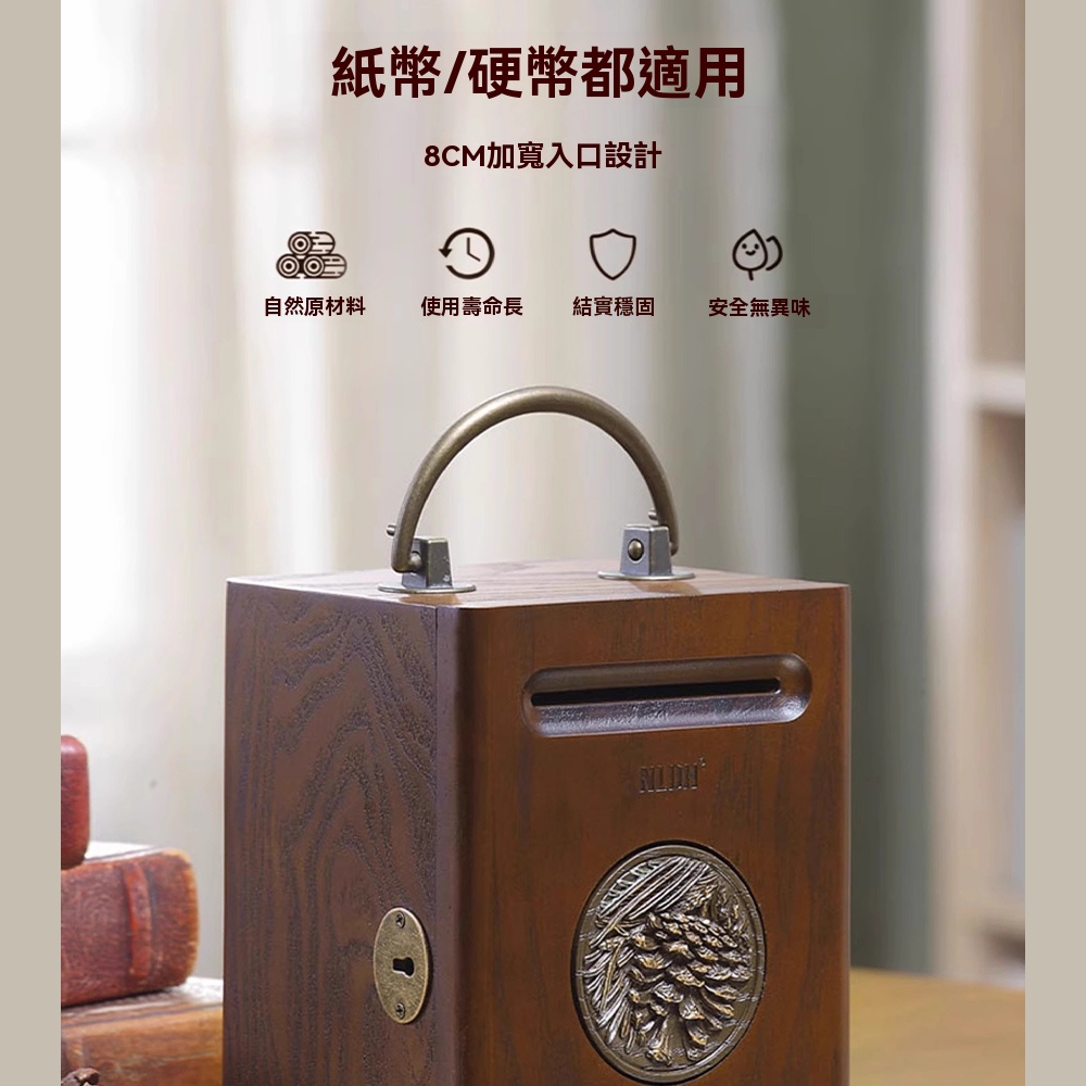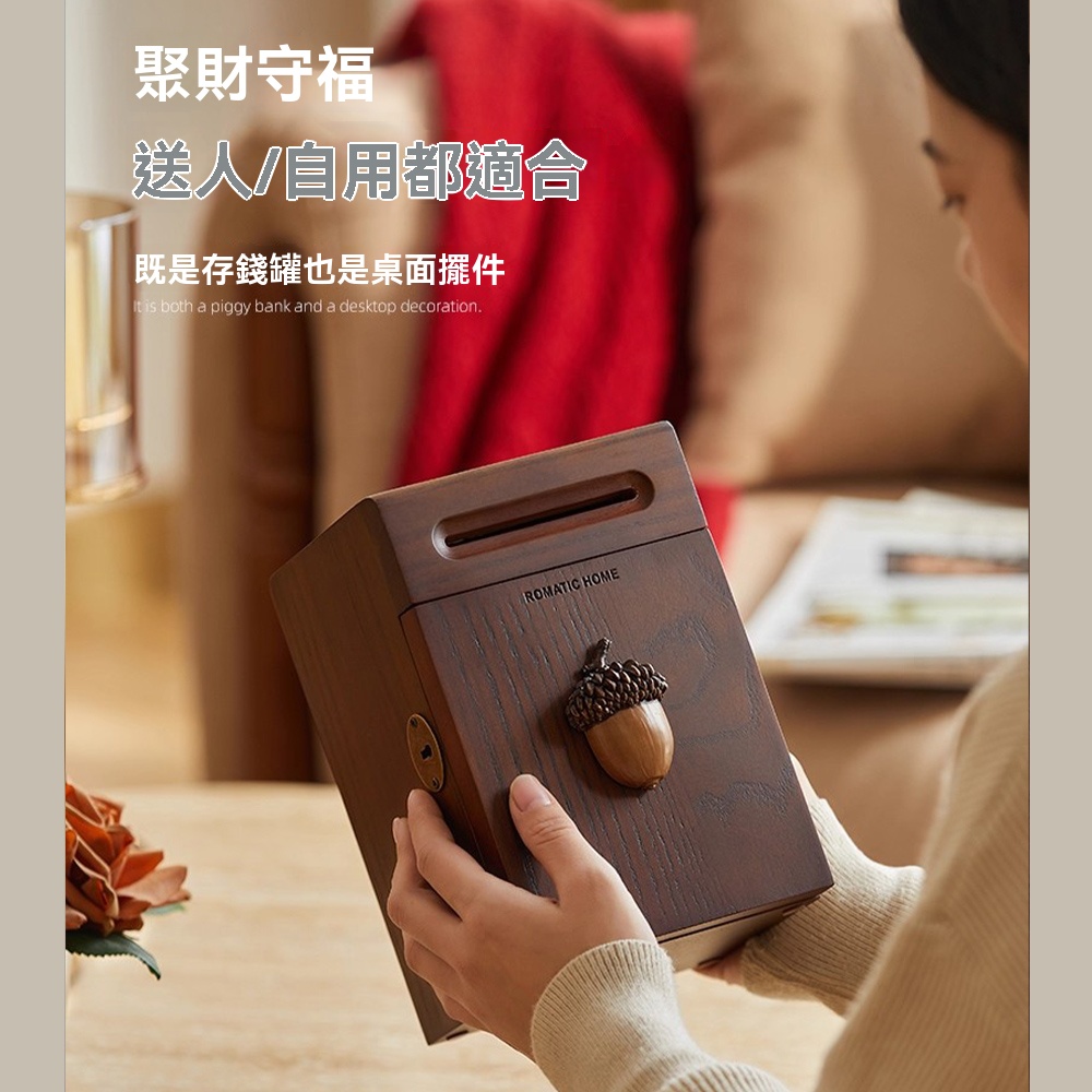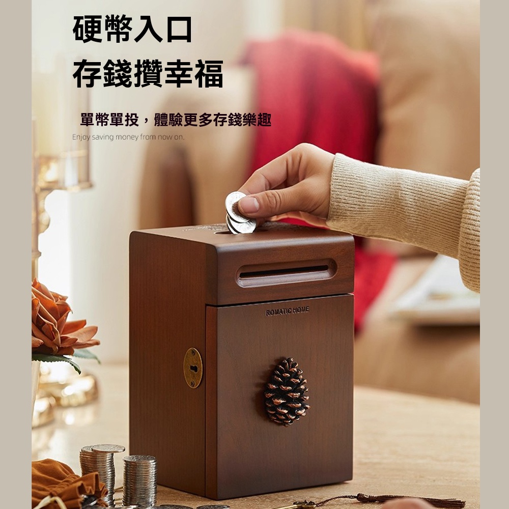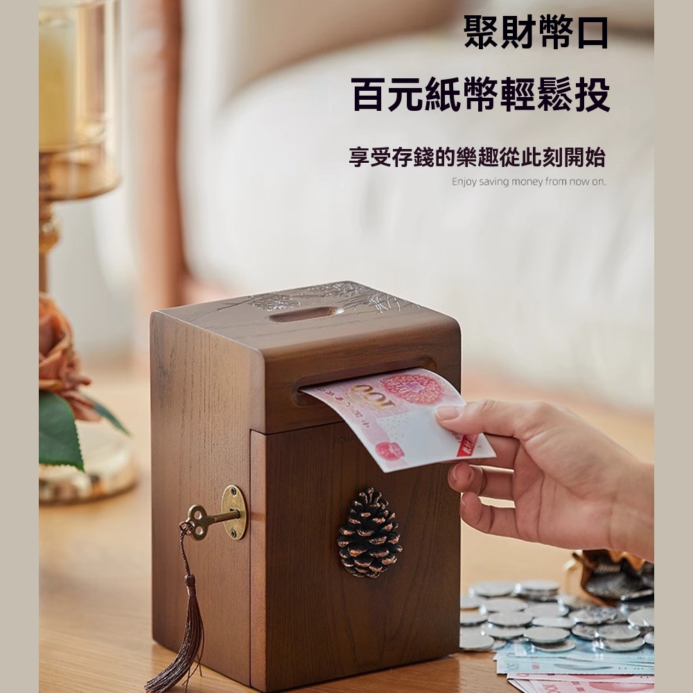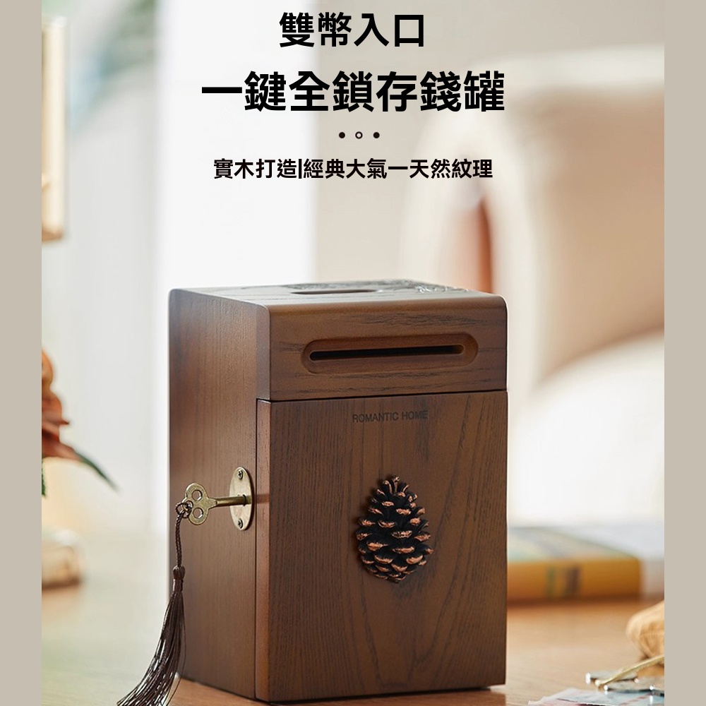 芯毅 帶鎖儲錢罐 實木存錢罐 可存可取生日禮物 儲錢罐創意禮品 儲蓄罐 存錢筒 大容量存錢 交換禮物