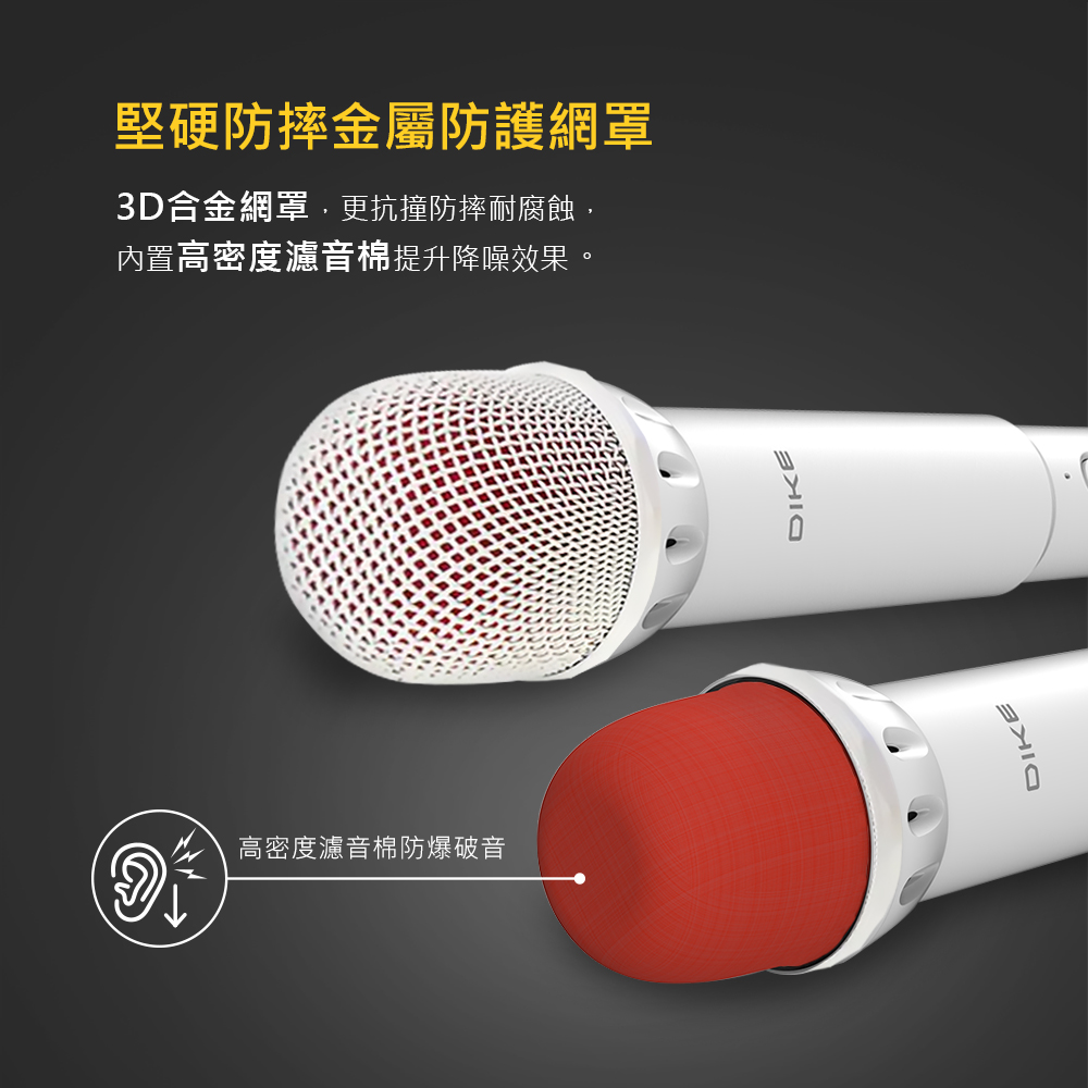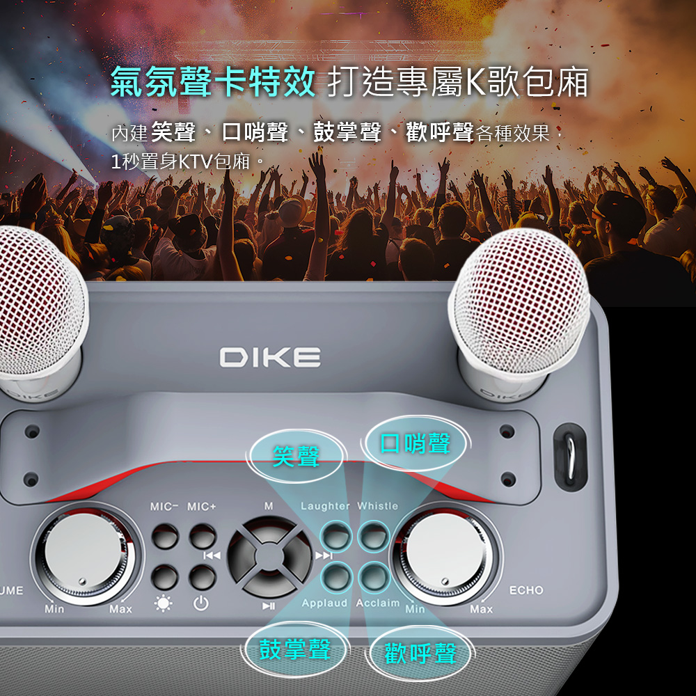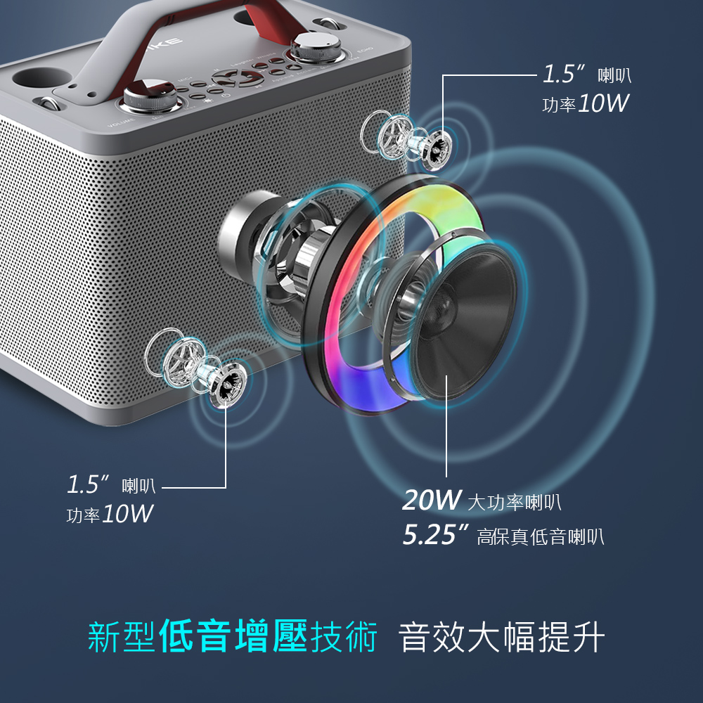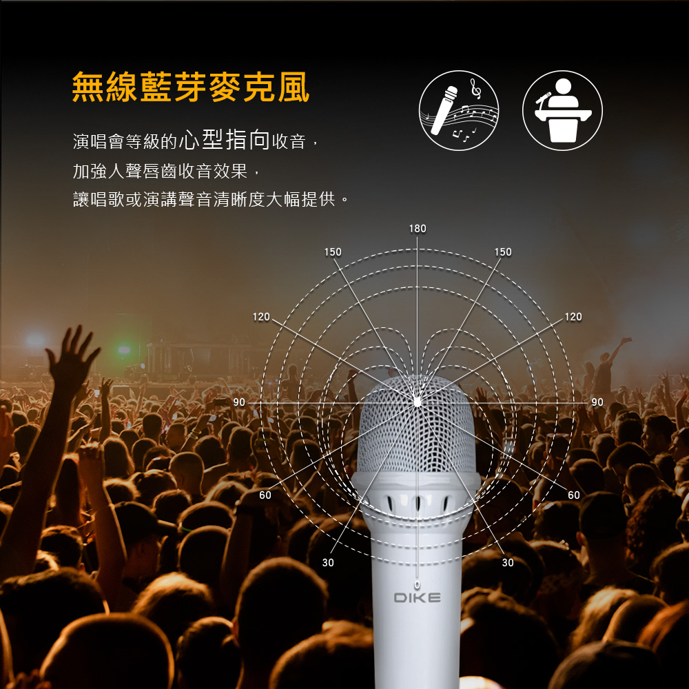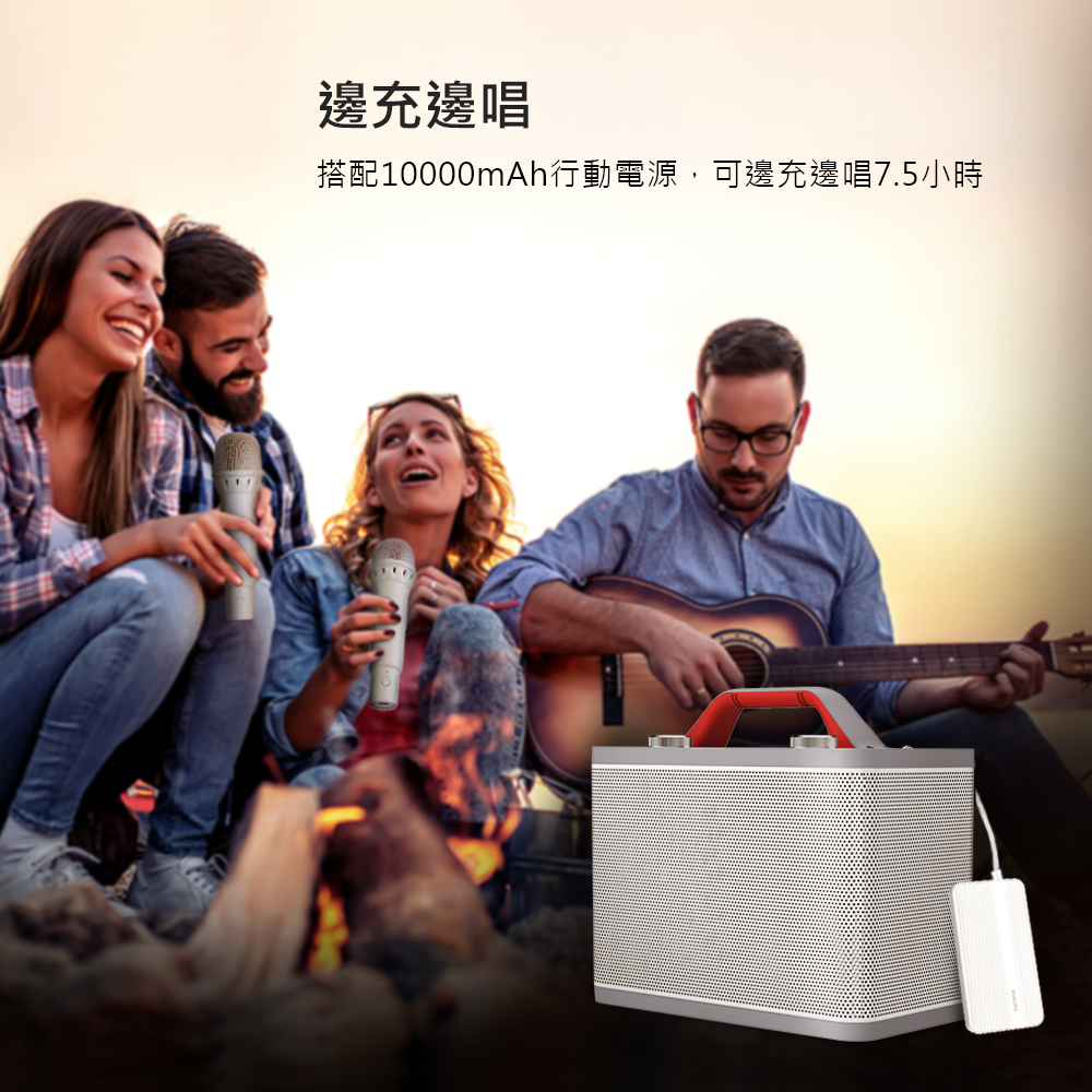 附贈兩隻藍牙無線MIC,旋鈕式音量/迴音調整,滿足提供雙人對唱