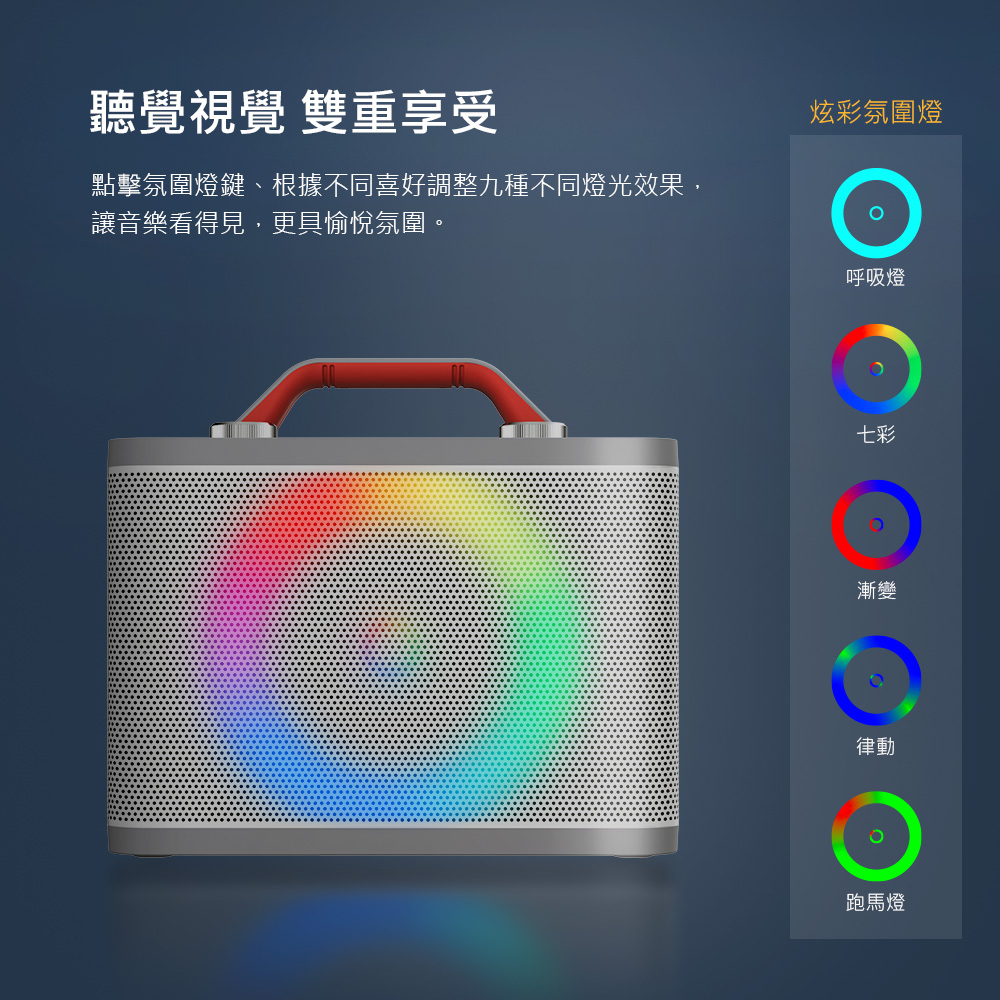 內建九種不同效果氛圍燈光模式,根據喜好隨心調整