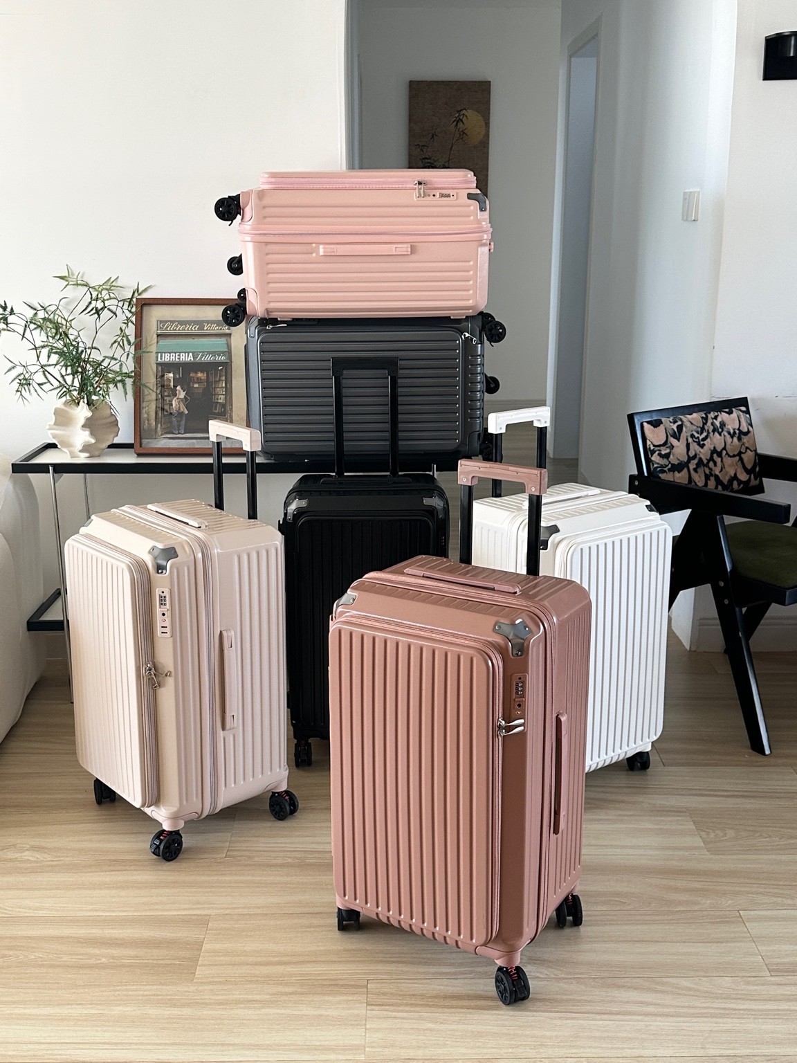 • 🛞 彈簧避震靜音輪:滑行更穩更安靜,減少行李震動。