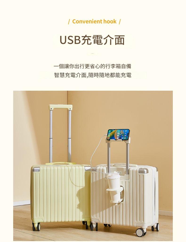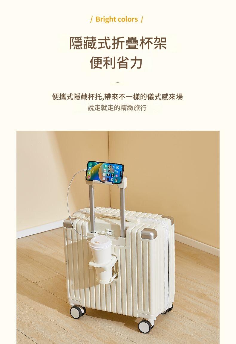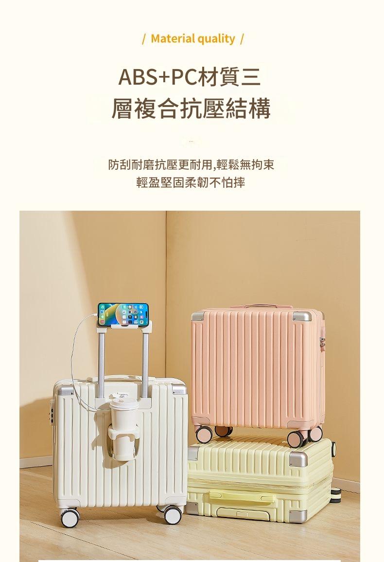 登機行李箱 18吋20吋 馬卡龍色 高顏值 USB充電摺疊杯架 密碼鎖 萬向輪 輕巧ABS材質