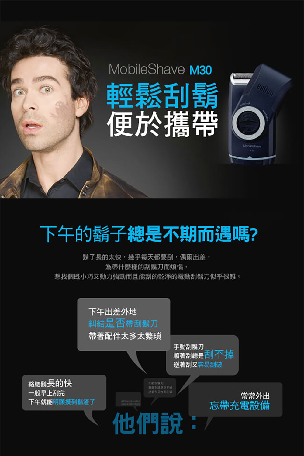 【BRAUN 百靈】德國百靈BRAUN M系列電池式輕便電鬍刀(M30)