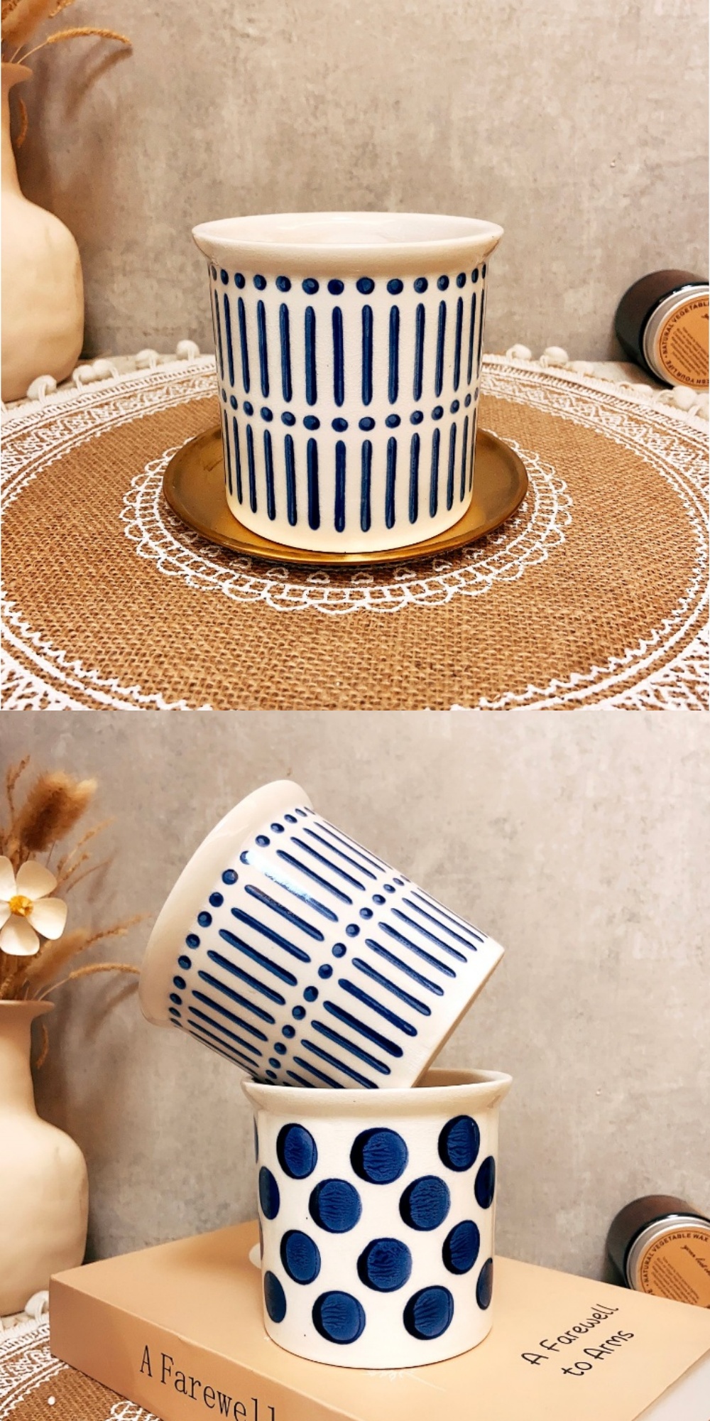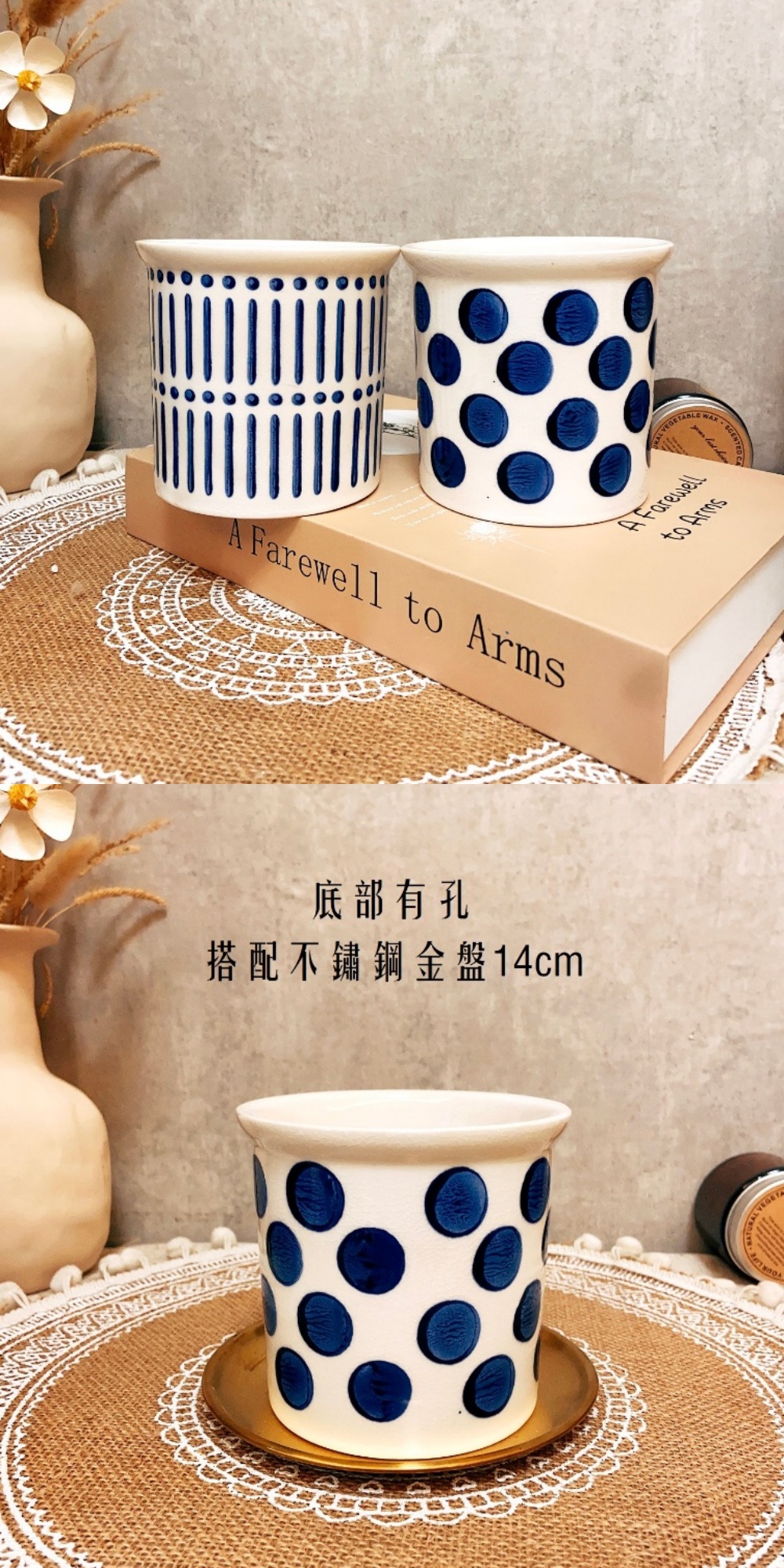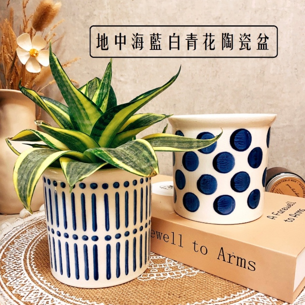 陶盆 地中海藍白青花陶瓷盆 花盆 花器 花瓶 陶製品 陶藝 多肉盆 觀葉盆 小品盆栽 室內植物