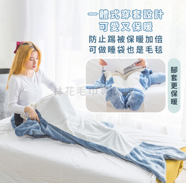 【法蘭絨鯊魚睡毯|萌趣又保暖,冬日居家必備!】