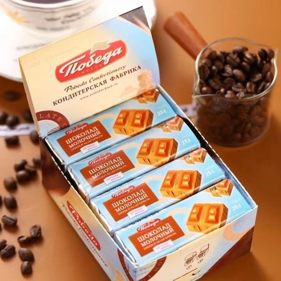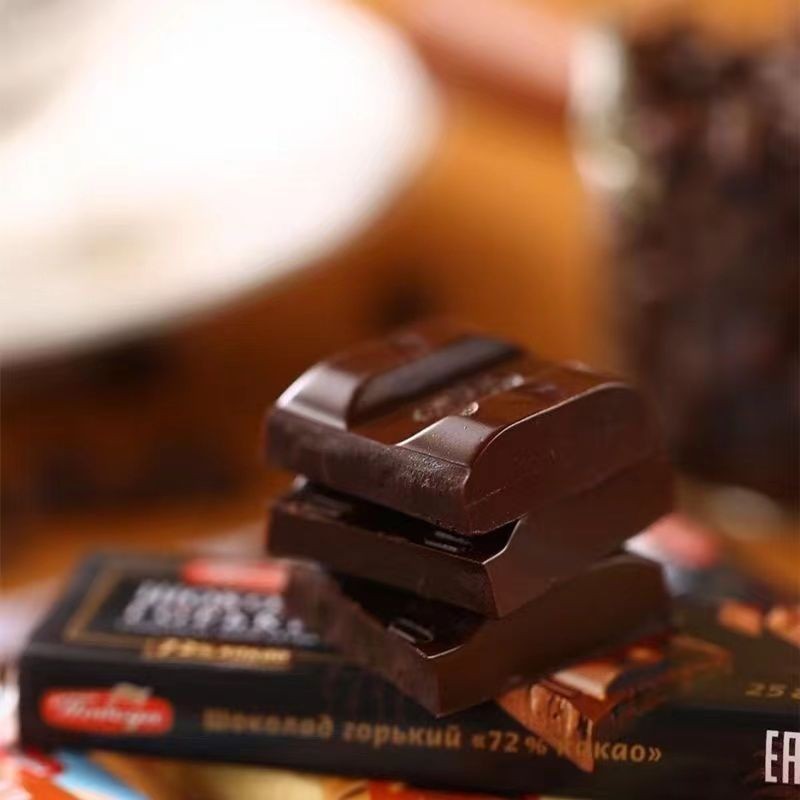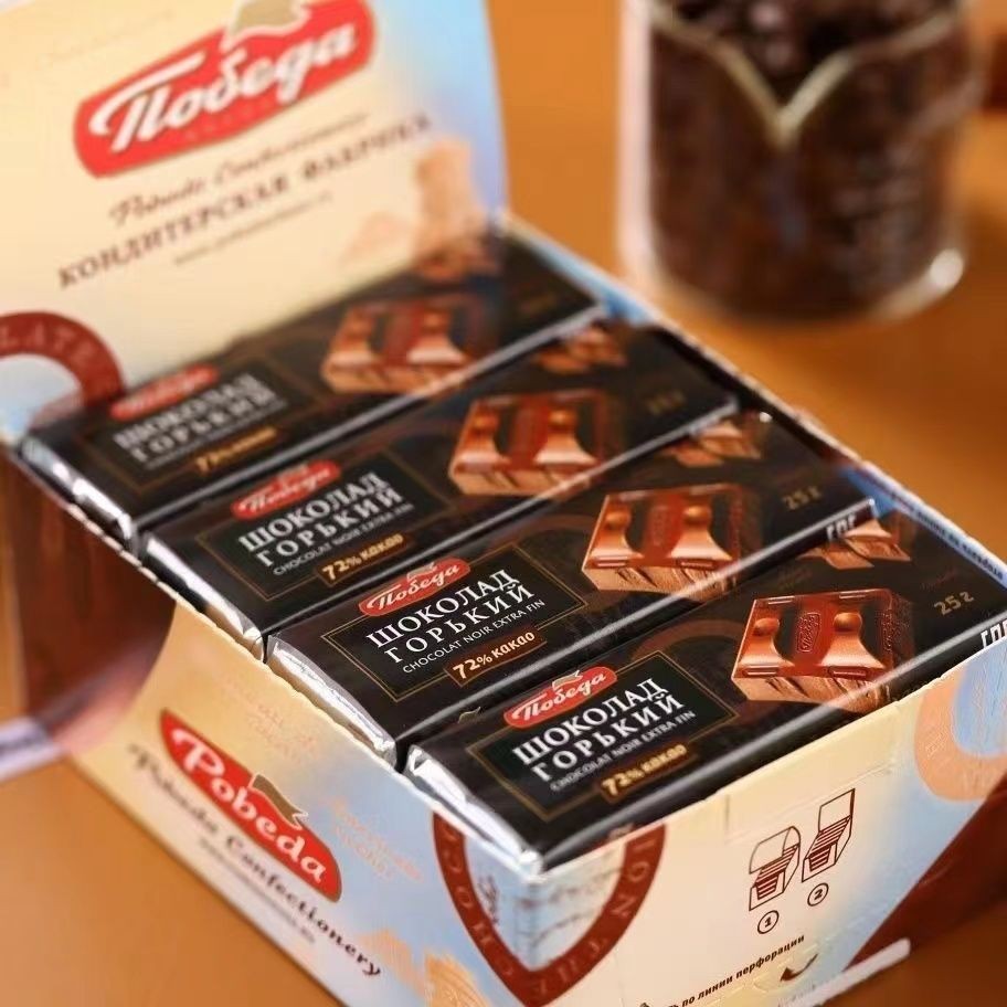 心心相印 【2萬人收藏】俄羅斯原裝進口勝利牌72%可可脂黑巧克力牛奶奶油獨立條禮盒裝
