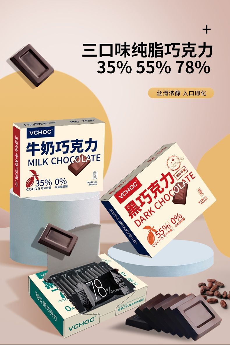 心心相印 【健康美味】VCHOC黑巧克力純可可脂烘焙健身喜糖果零食送女友節日禮物禮盒裝